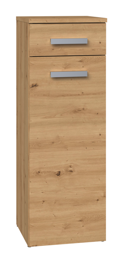 Mebel do łazienki w formie wąskiego regału, słupka do przechowywania niezbędnych przyrządów, kosmetyków, tekstyliów łazienkowych. Korpus szafki wykonany z wysokogatunkowej