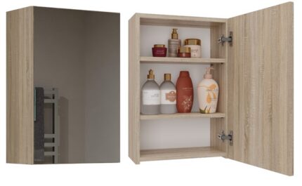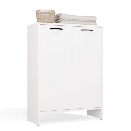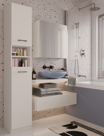 Szafka łazienkowa model FIN 2D wyróżnia się nowoczesną i funkcjonalną konstrukcją. Produkt wykonany jest z wysokogatunkowej płyty laminowanej producenta Kronospan