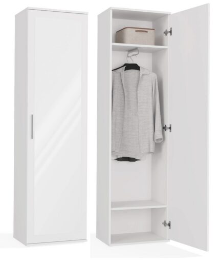 SZAFA SD-50 LUSTRO – WĄSKA SZAFA Z LUSTREM NA FRONCIE FRONT Z LUSTREM | SYSTEM TIP-ON KOLOR: BIEL MAT IDEALNA