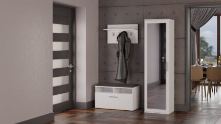SZAFA DO PRZEDPOKOJU MODEL: "DUO" SZAFA Z LUSTREM KOLOR: BIEL MAT Elegancka i funkcjonalna szafa do przedpokoju DUO to doskonałe