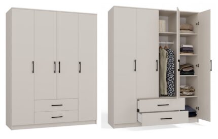 DUŻA SZAFA Z DRZWIAMI I Z 2 SZUFLADAMI MODEL: ROMANA 160 bez lustra KOLOR: KASZMIR (Stylowy i modny odcień beżu)