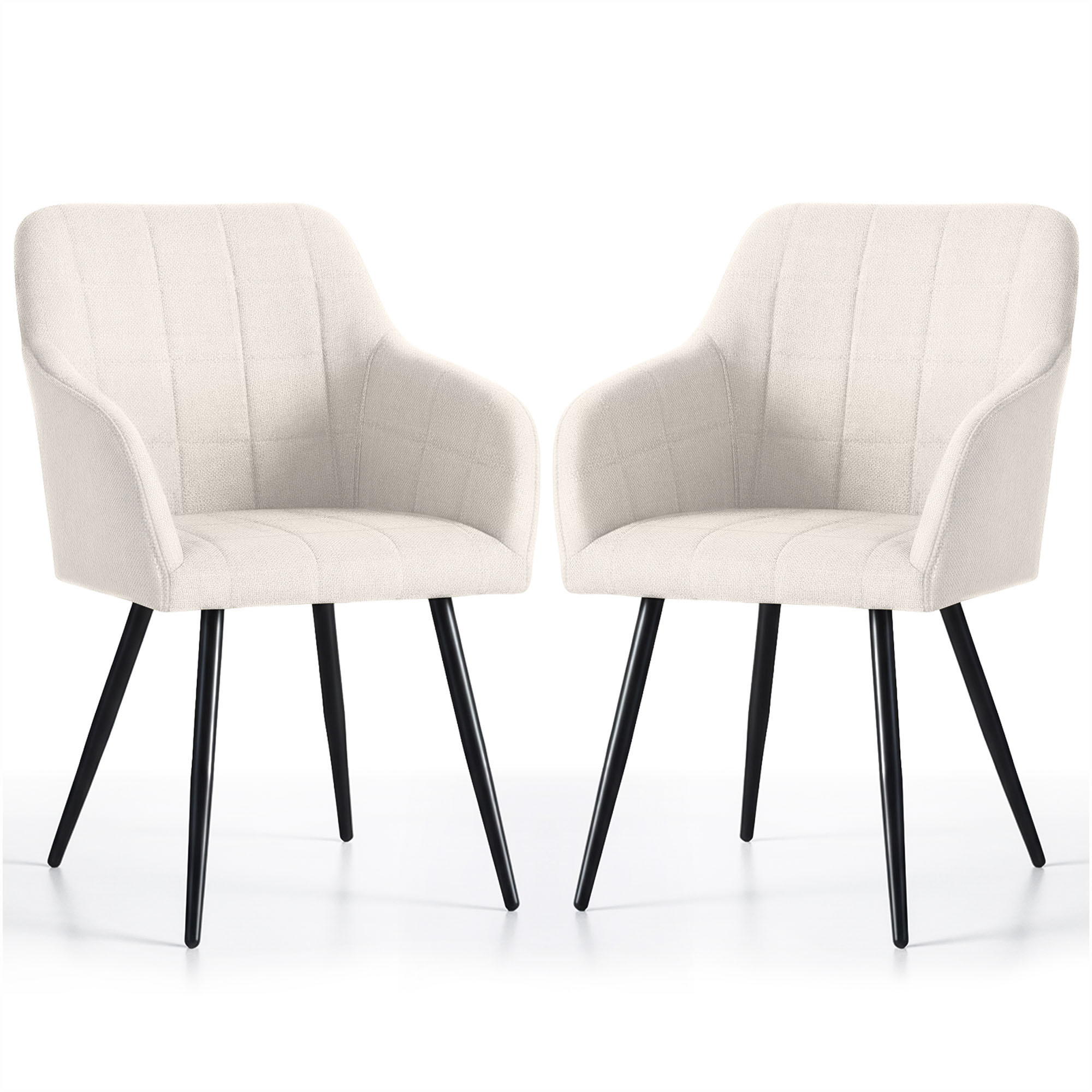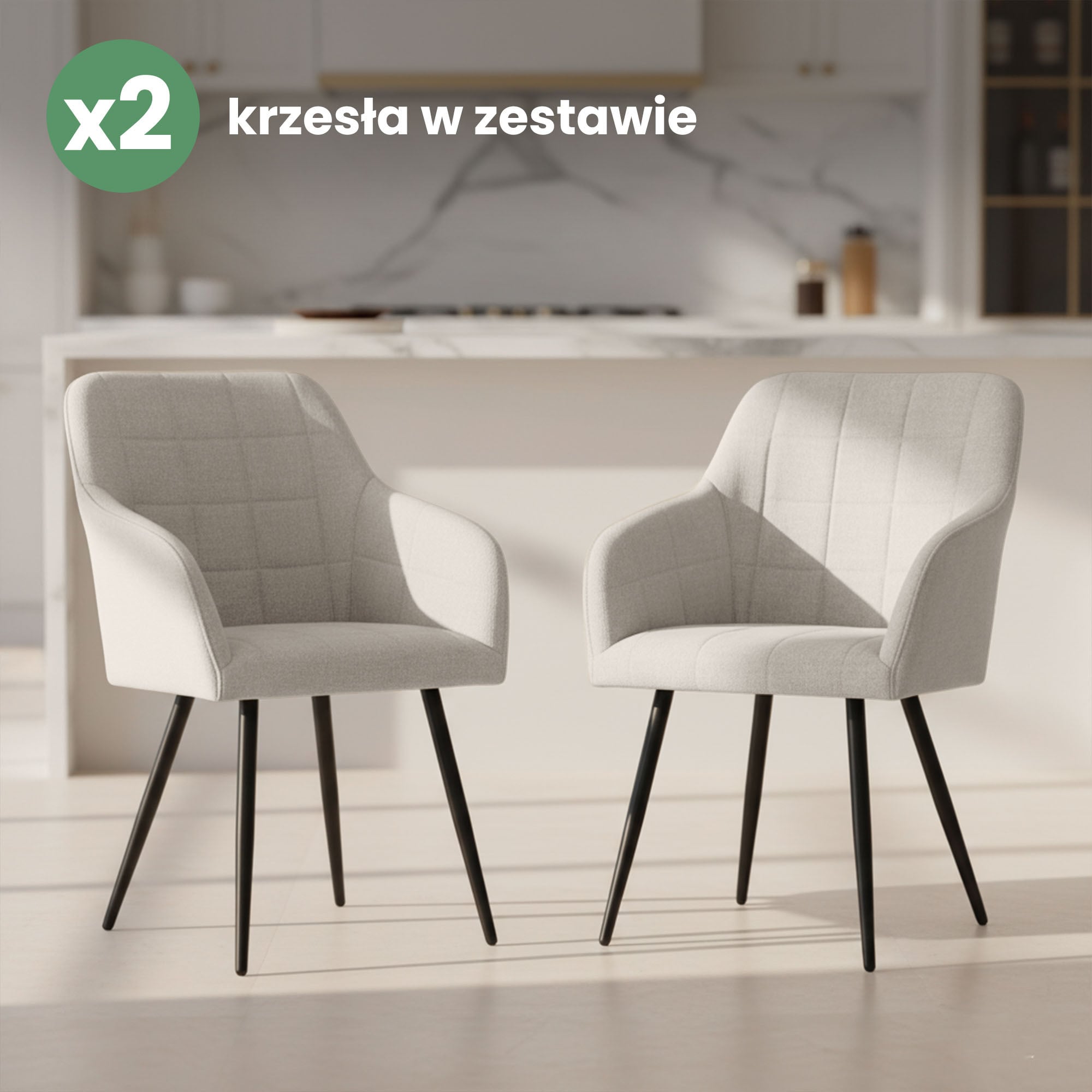 2x Krzesło tapicerowane z przeszyciami kwadratowymi Kremowe LUXANO Czarne nogi tkanina Lumos