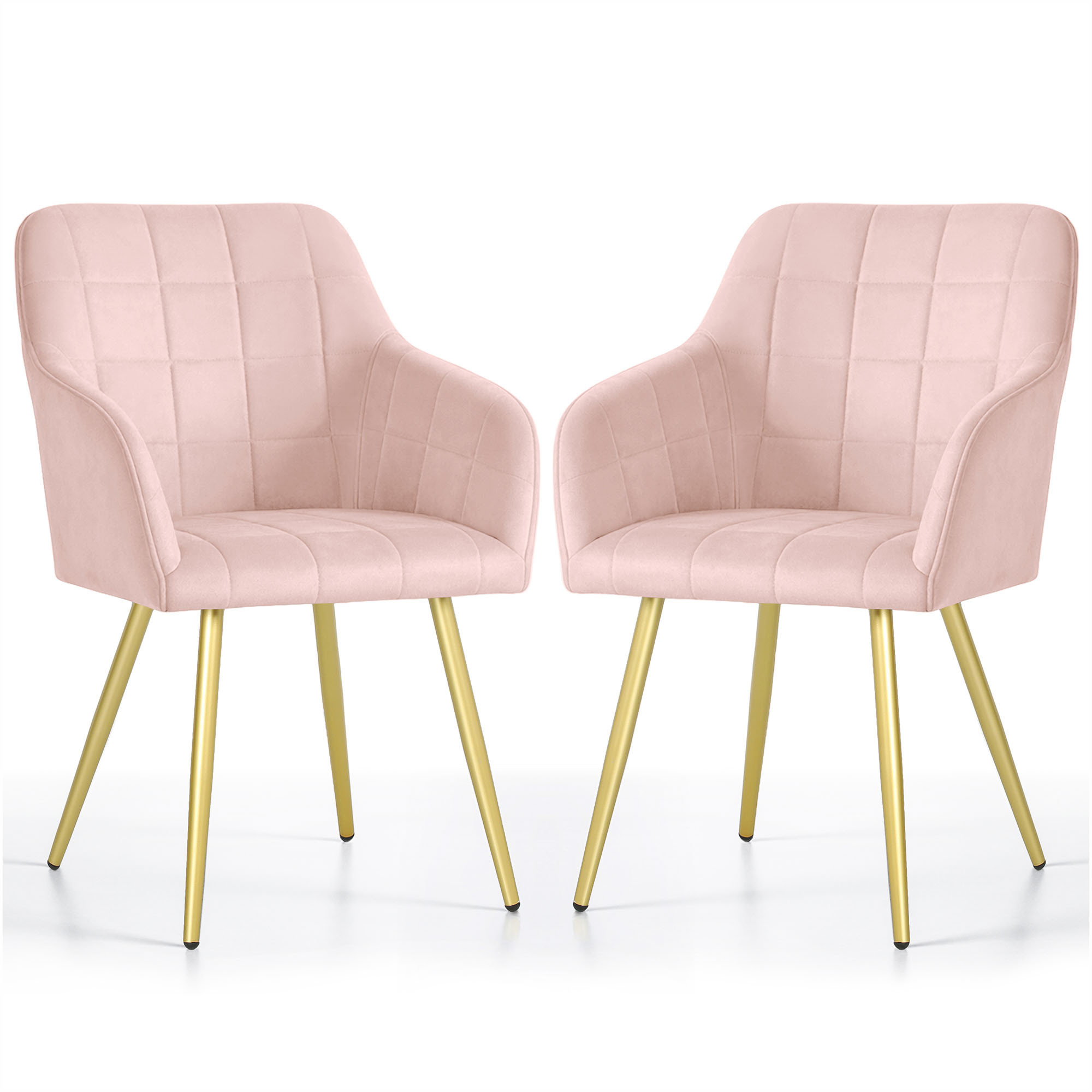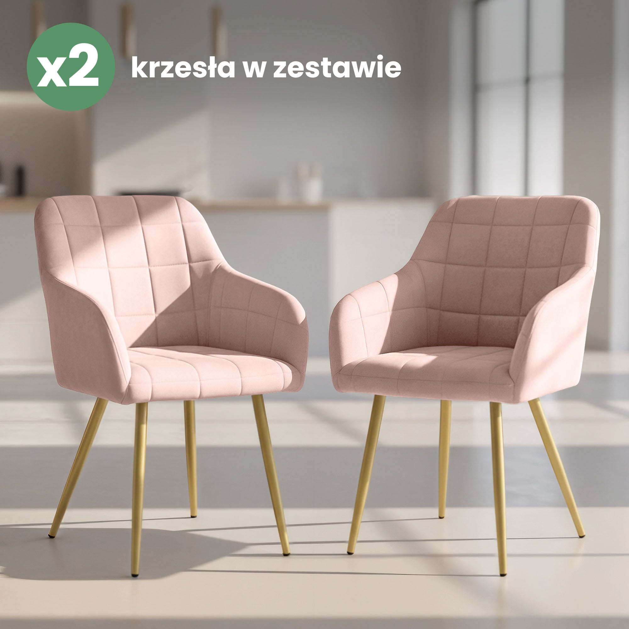 2x Krzesło tapicerowane z przeszyciami kwadratowymi Pudrowy Róż LUXANO Złote nogi