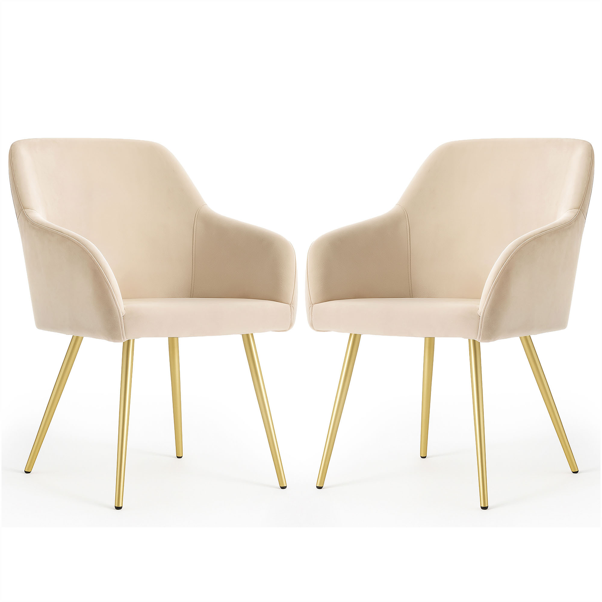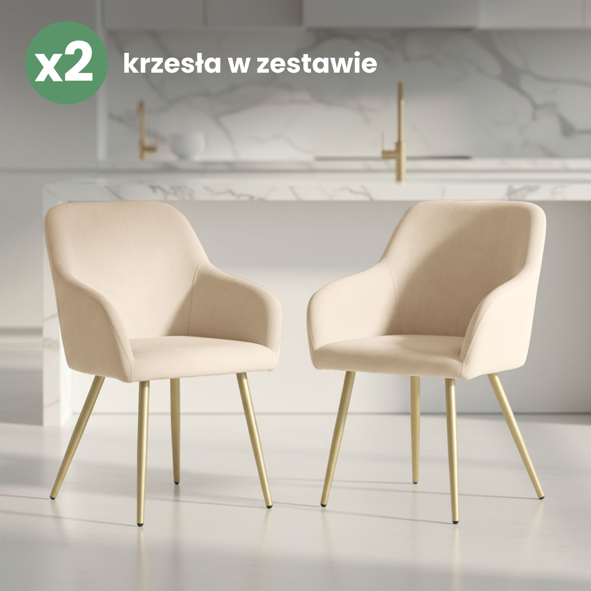 2x Welurowe krzesło tapicerowane gładkie Beżowe ESTELLE Złote nogi