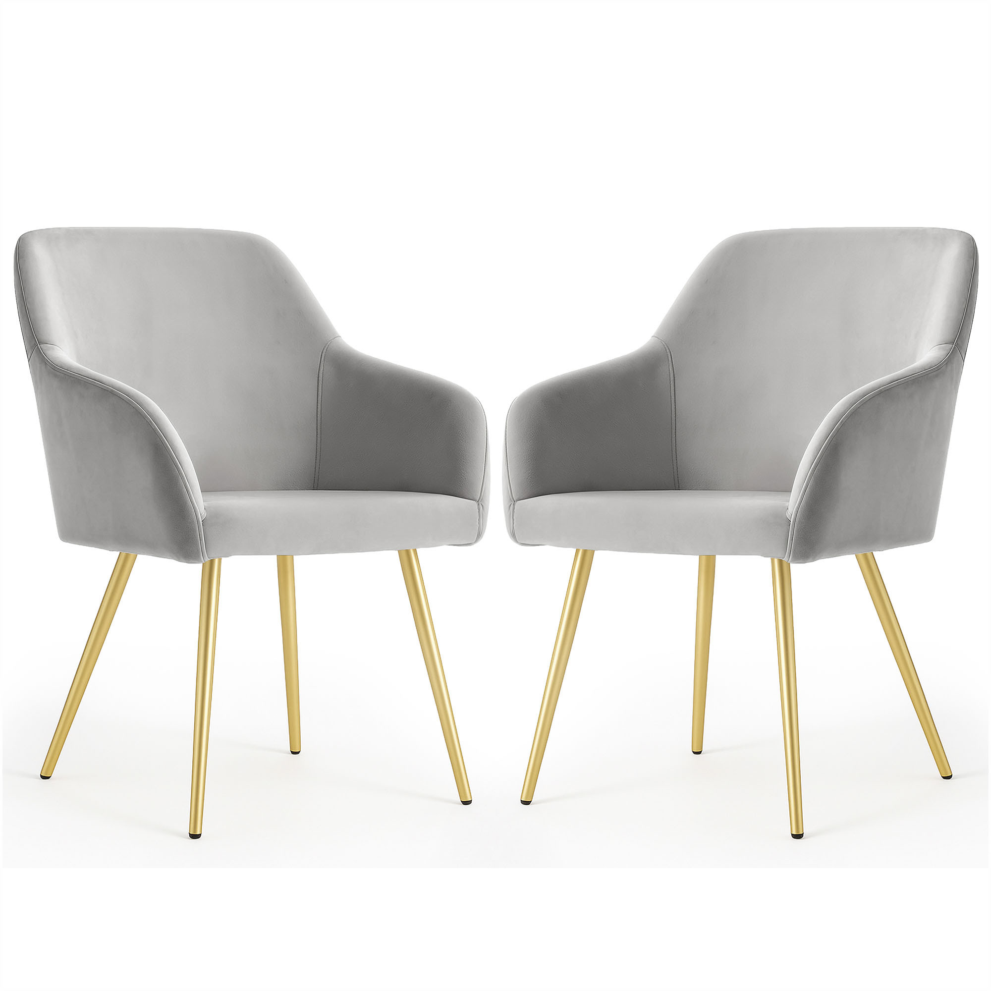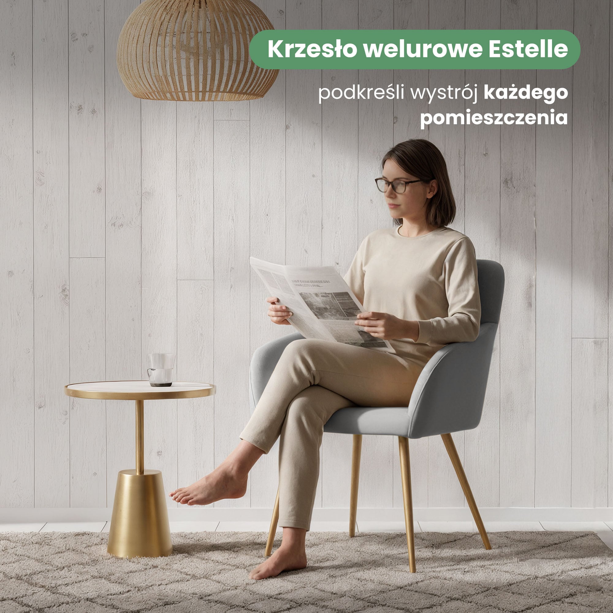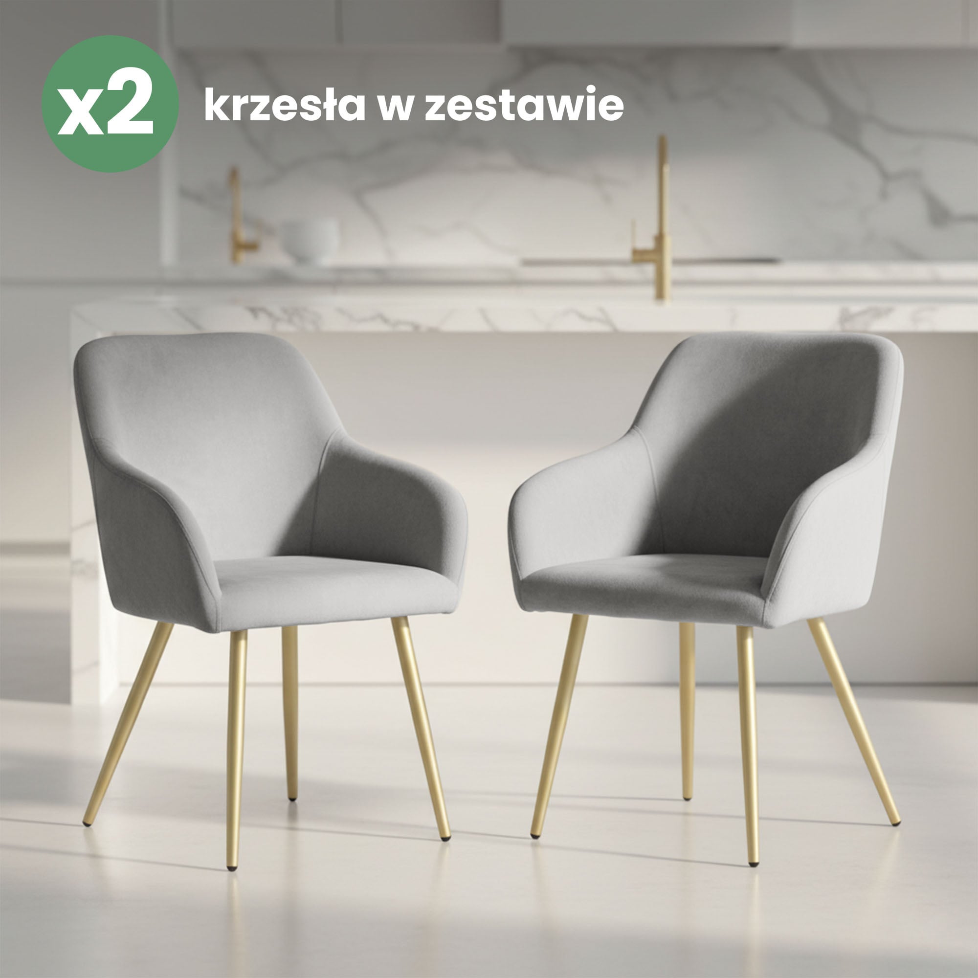 2x Welurowe krzesło tapicerowane gładkie Szare ESTELLE Złote nogi