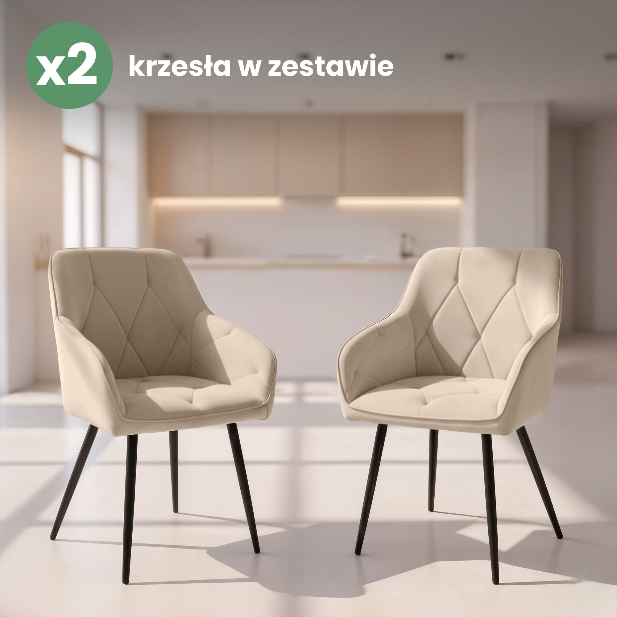 2x Welurowe krzesło tapicerowane pikowane Beżowe DIAMANTE Czarne nogi
