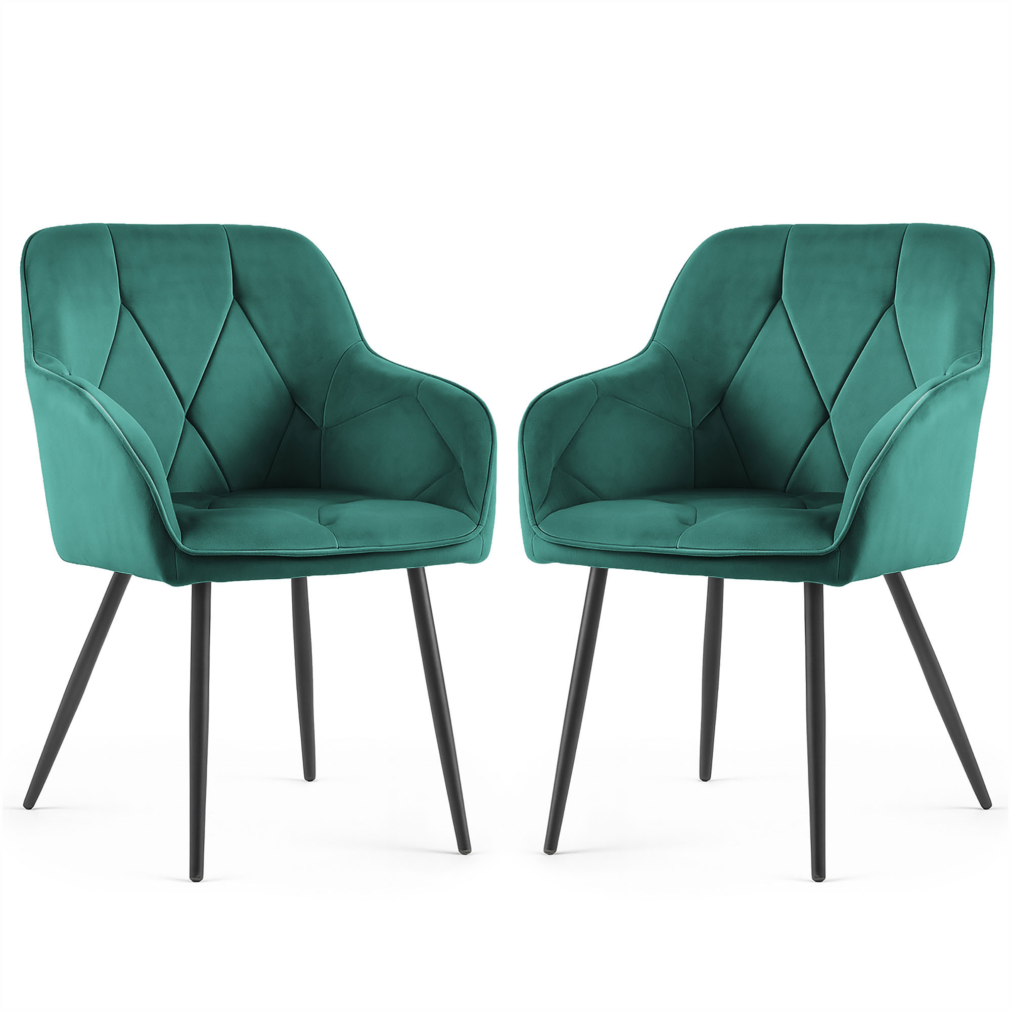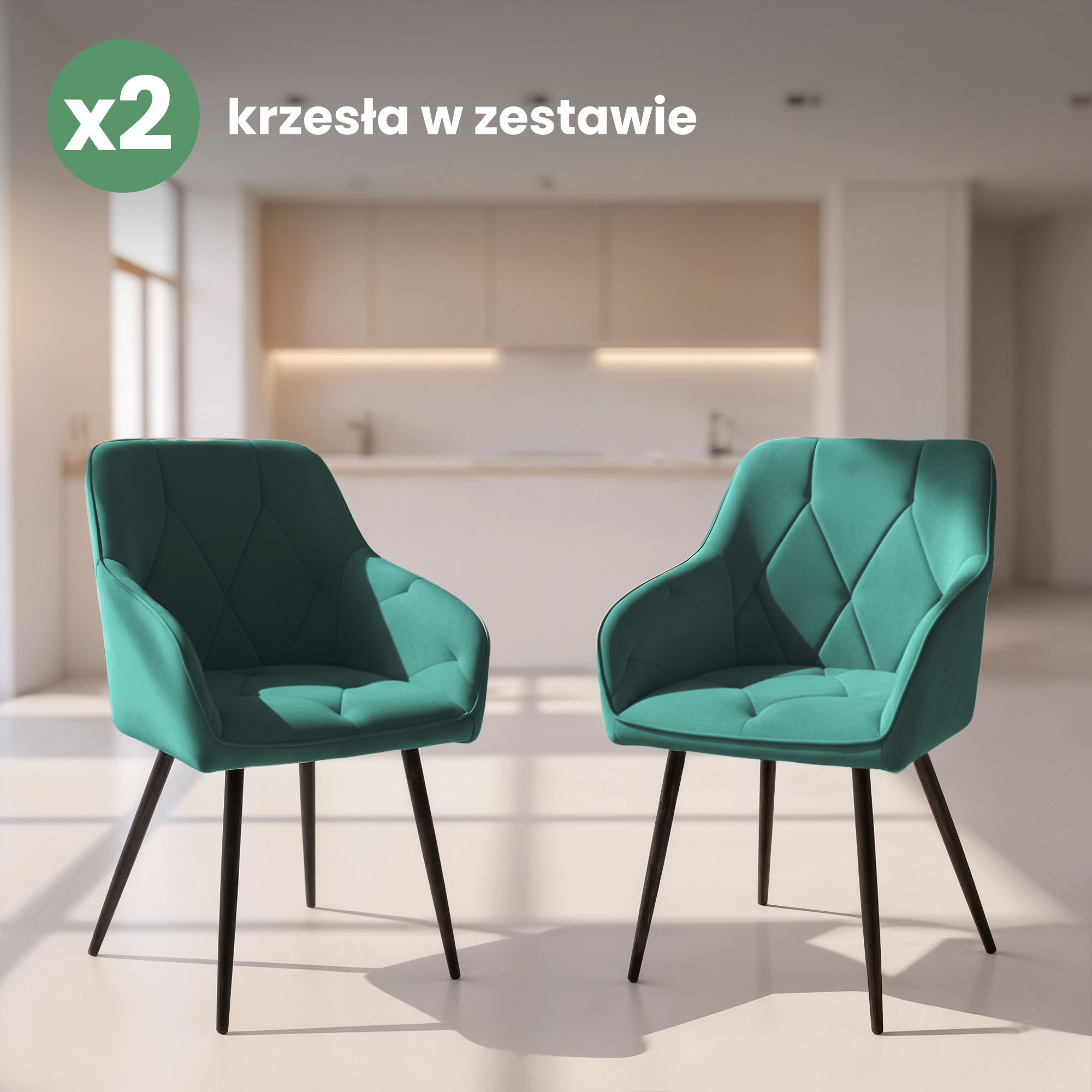 2x Welurowe krzesło tapicerowane pikowane Butelkowa Zieleń DIAMANTE Czarne nogi