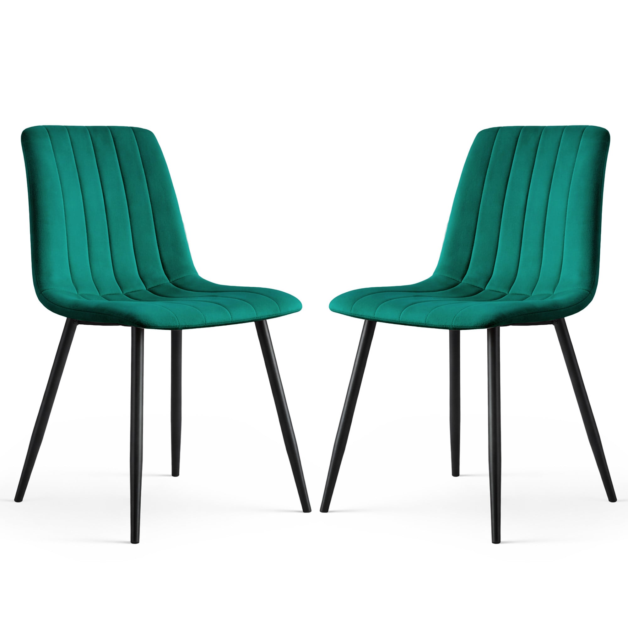 2x Welurowe krzesło tapicerowane pikowane Butelkowa Zieleń LIVO Czarne nogi