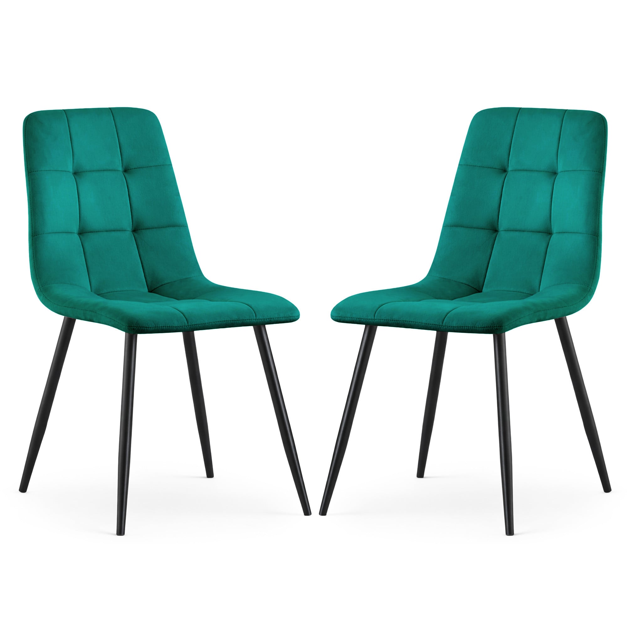 2x Welurowe krzesło tapicerowane pikowane Butelkowa Zieleń NERO Czarne nogi