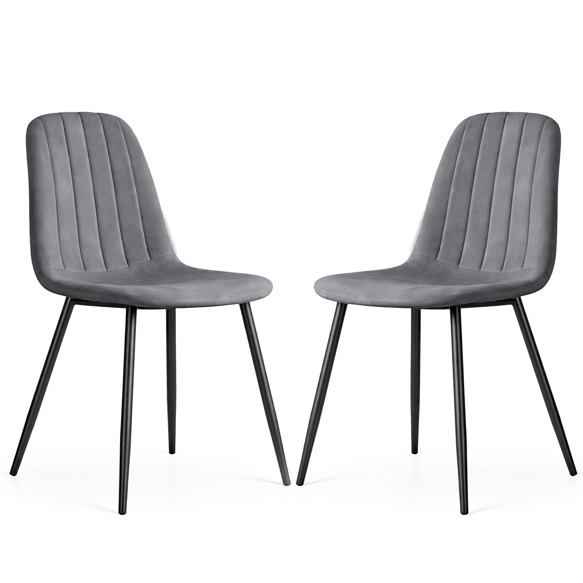 2x Welurowe krzesło tapicerowane pikowane Ciemny Grafit LUMO Czarne nogi
