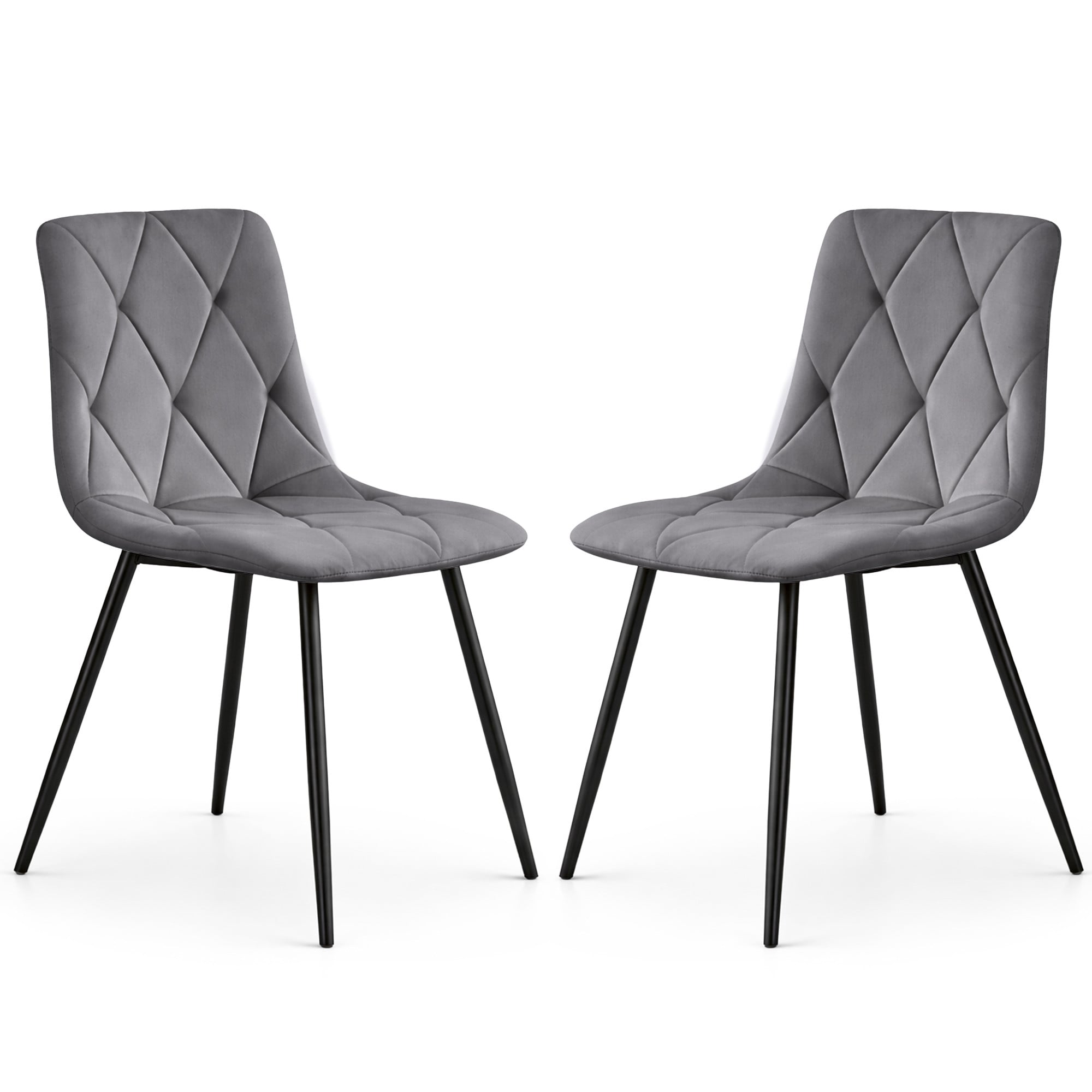 2x Welurowe krzesło tapicerowane pikowane Ciemny Grafit MILO Czarne nogi