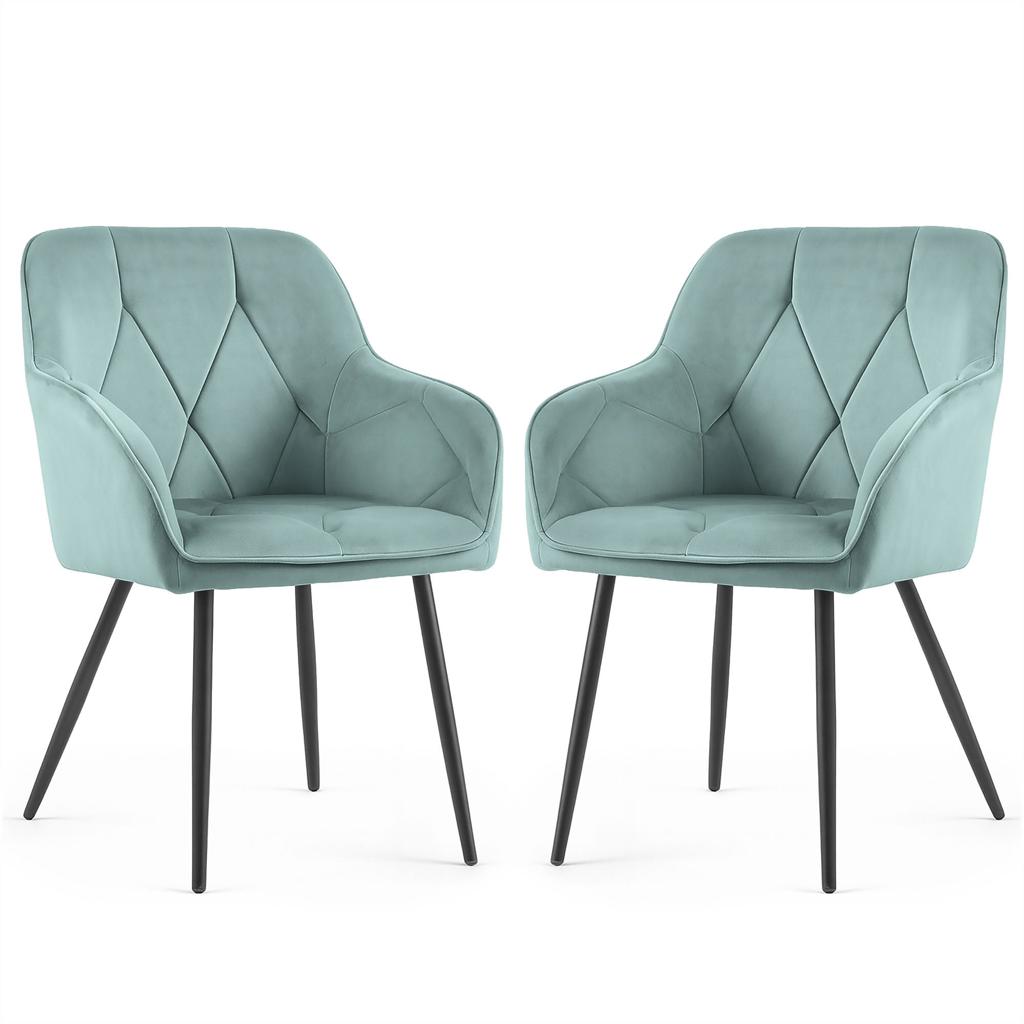 2x Welurowe krzesło tapicerowane pikowane Turkusowe DIAMANTE Czarne nogi