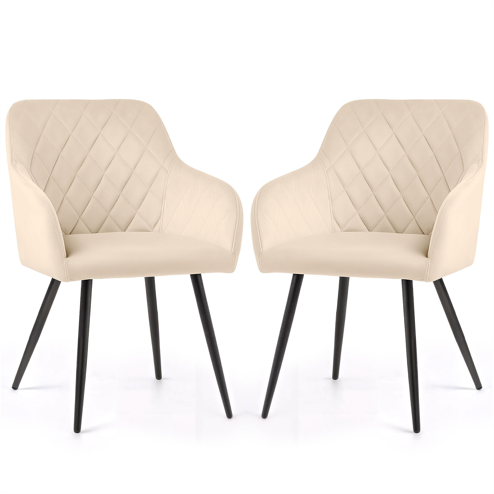 2x Welurowe krzesło tapicerowane pikowane w romby Beżowe VELTO Czarne nogi