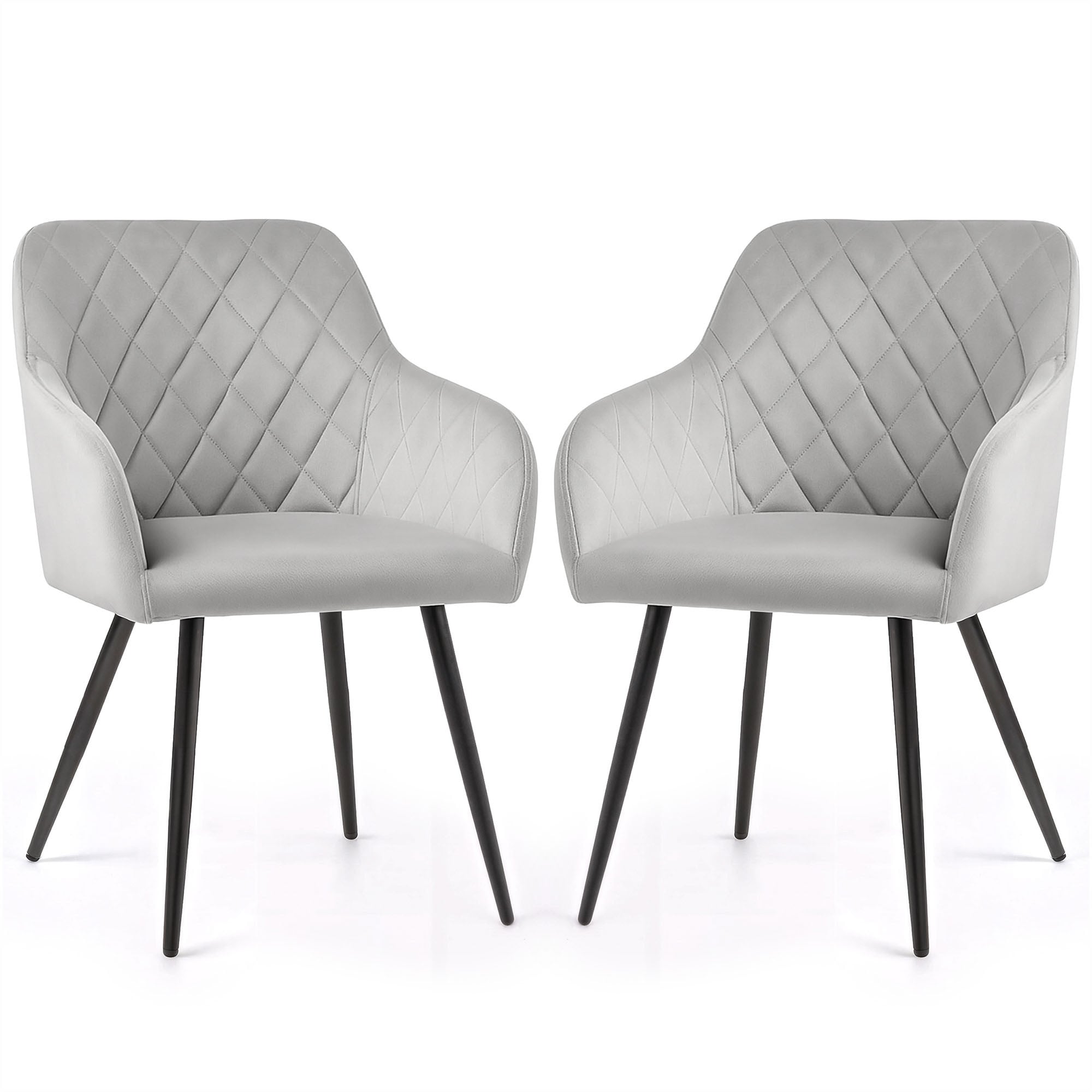 2x Welurowe krzesło tapicerowane pikowane w romby Szare VELTO Czarne nogi