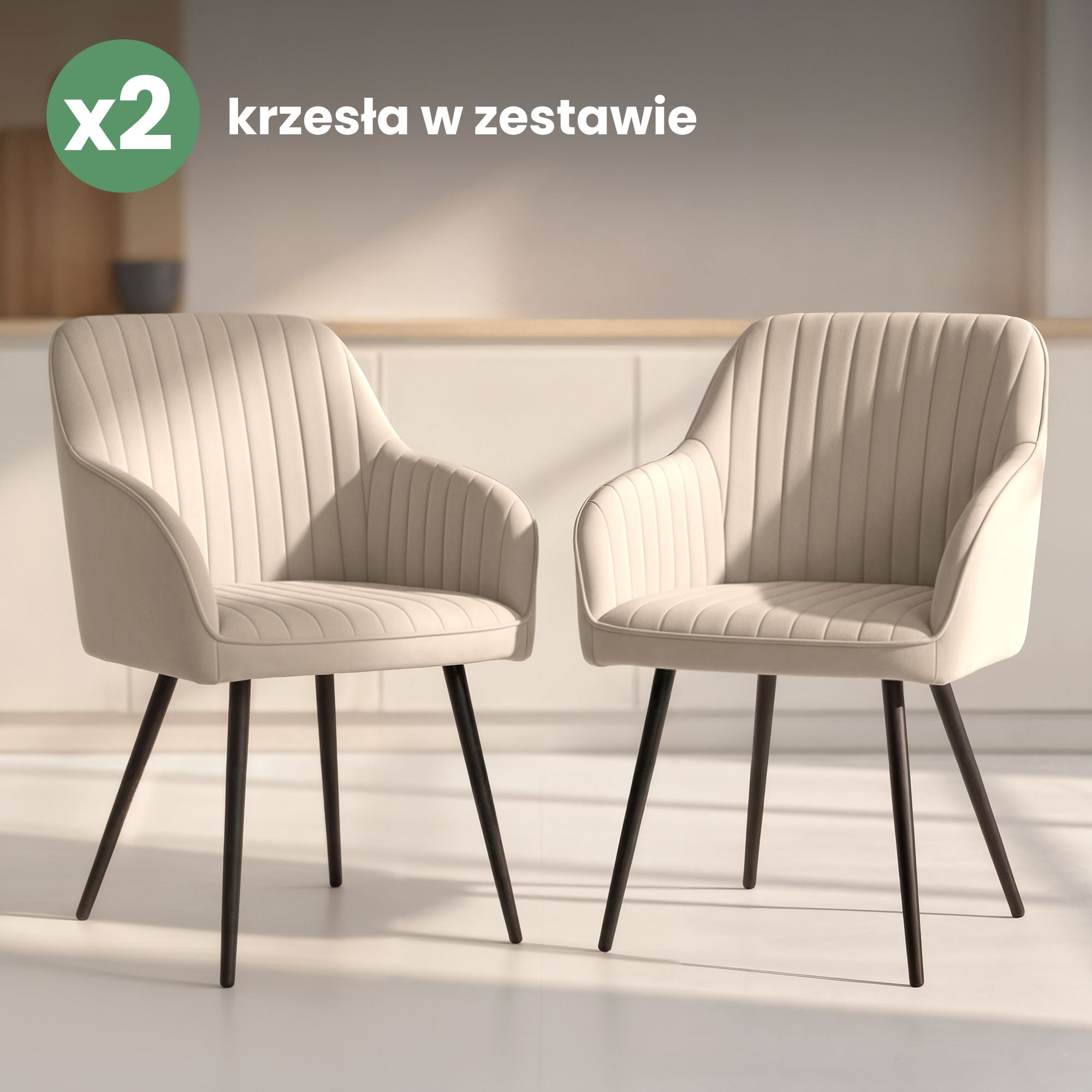 2x Welurowe krzesło tapicerowane z przeszyciami Beżowe FLORENCE Czarne nogi