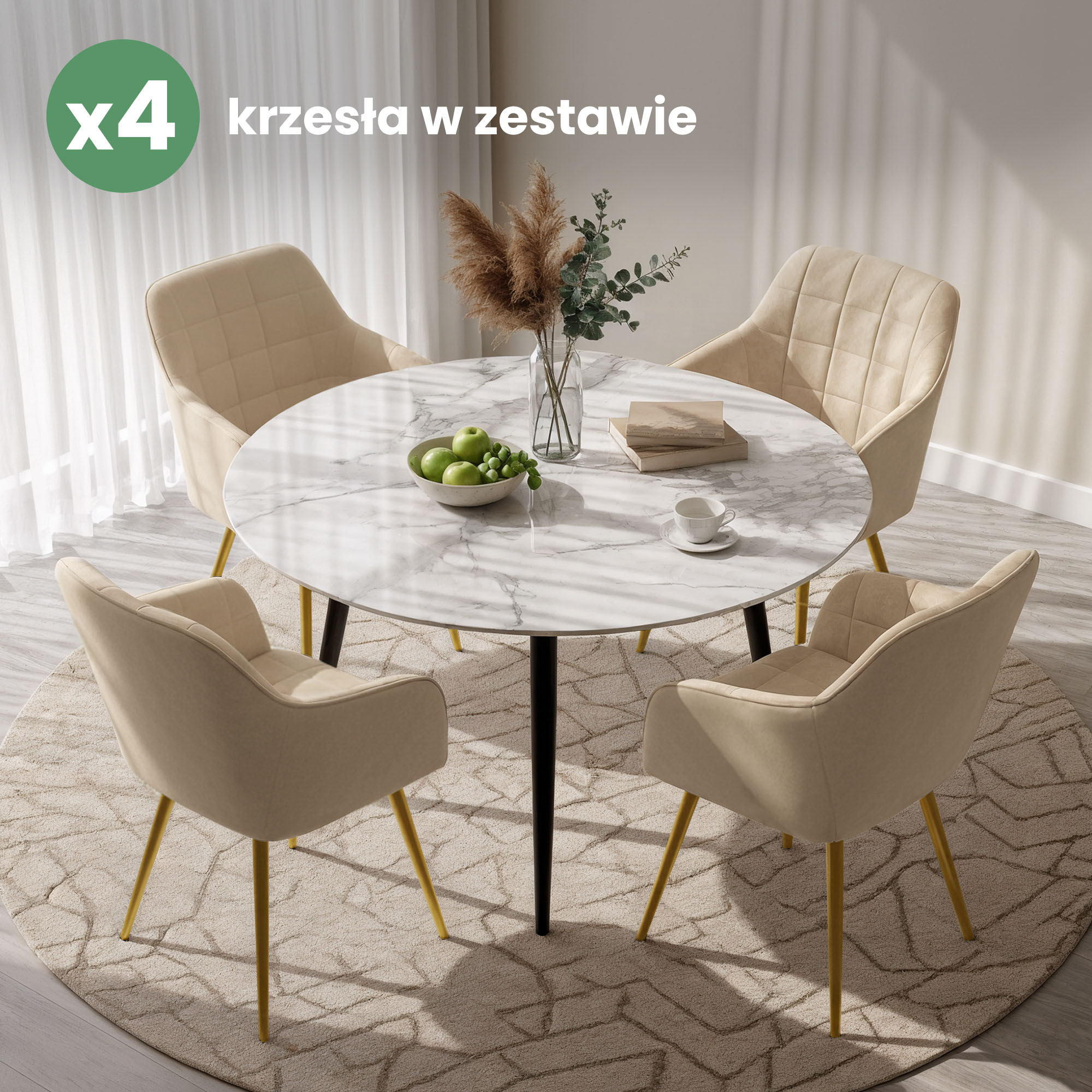 4x Krzesło tapicerowane z przeszyciami kwadratowymi Beżowe LUXANO Złote nogi