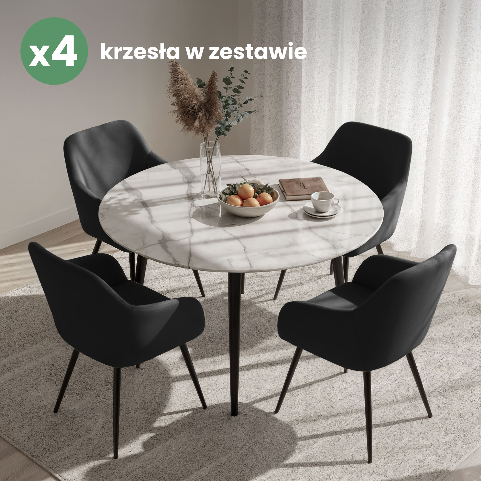 4x Welurowe krzesło tapicerowane gładkie Czarne ESTELLE Czarne nogi