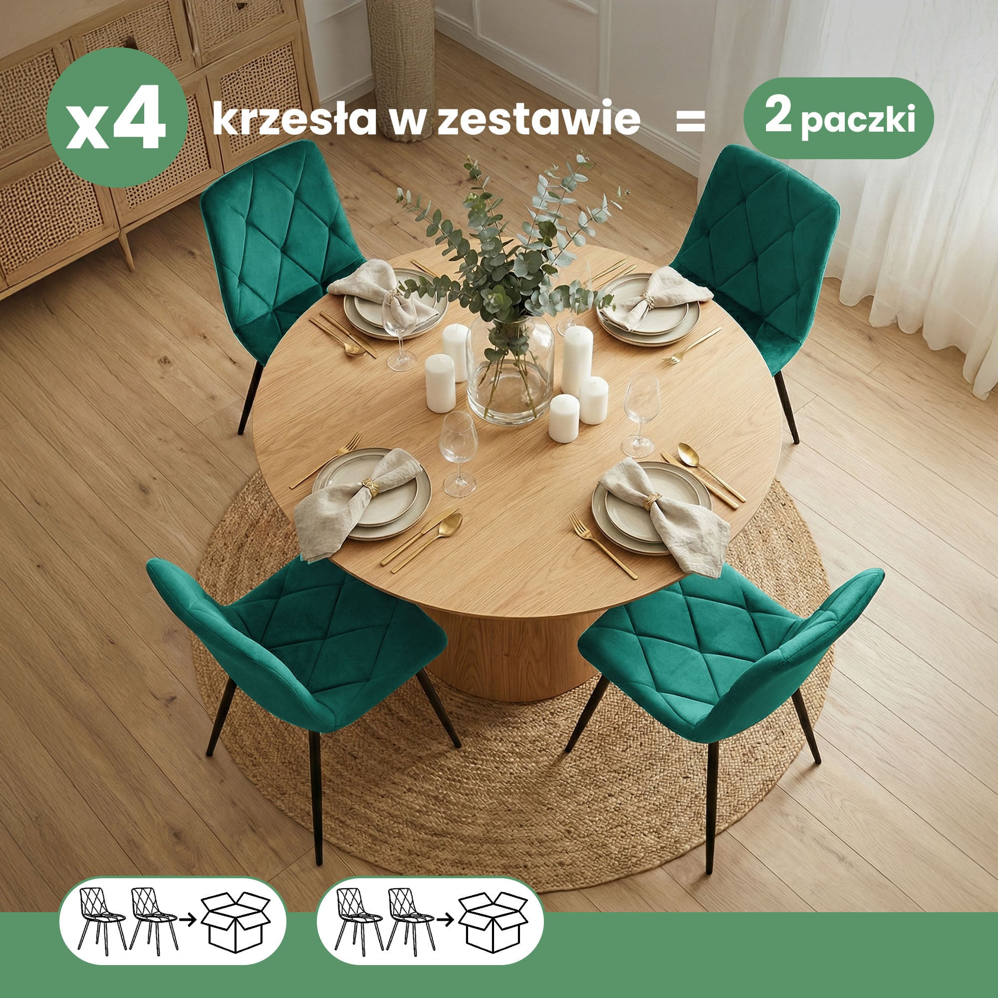 4x Welurowe krzesło tapicerowane pikowane Butelkowa Zieleń MILO Czarne nogi