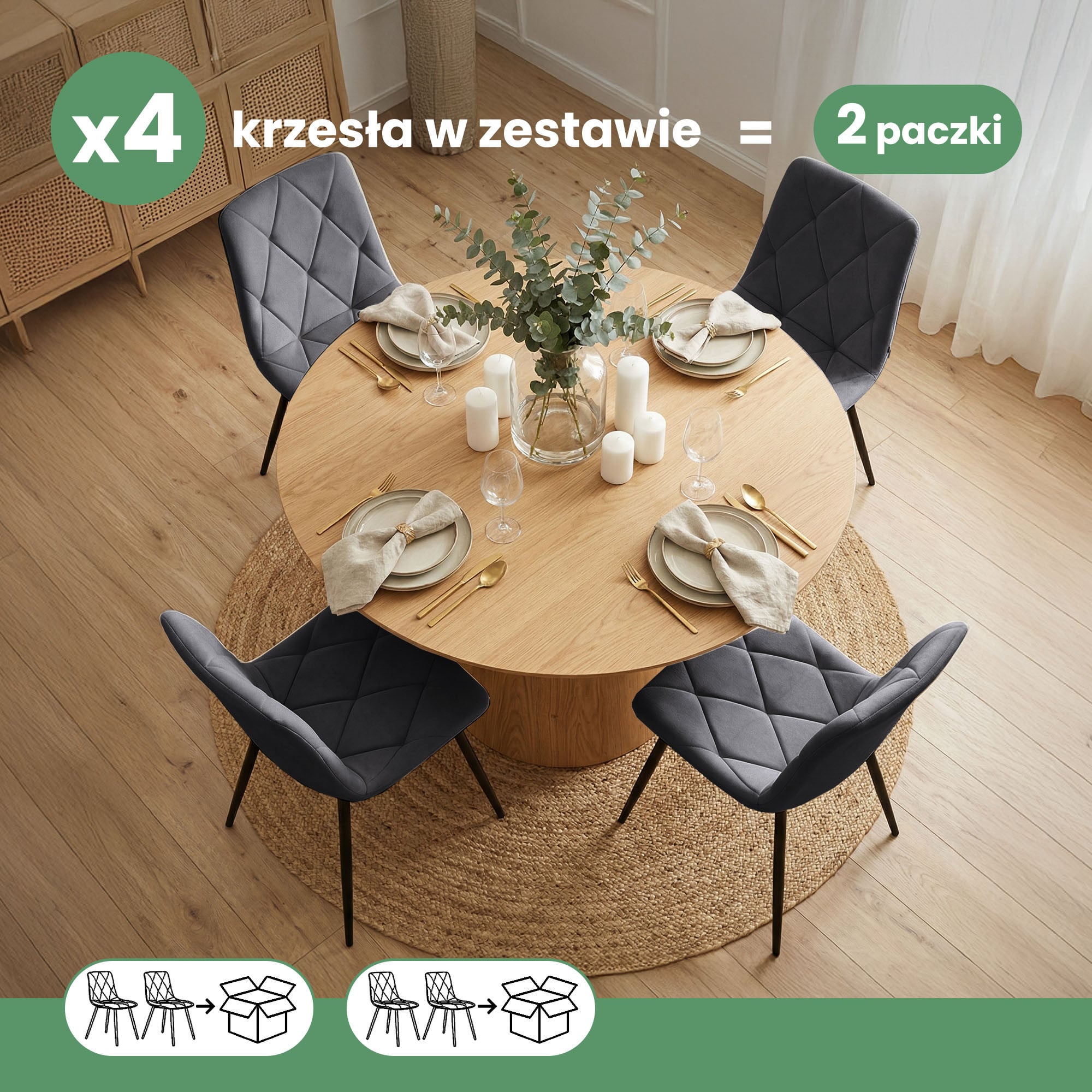 4x Welurowe krzesło tapicerowane pikowane Ciemny Grafit MILO Czarne nogi