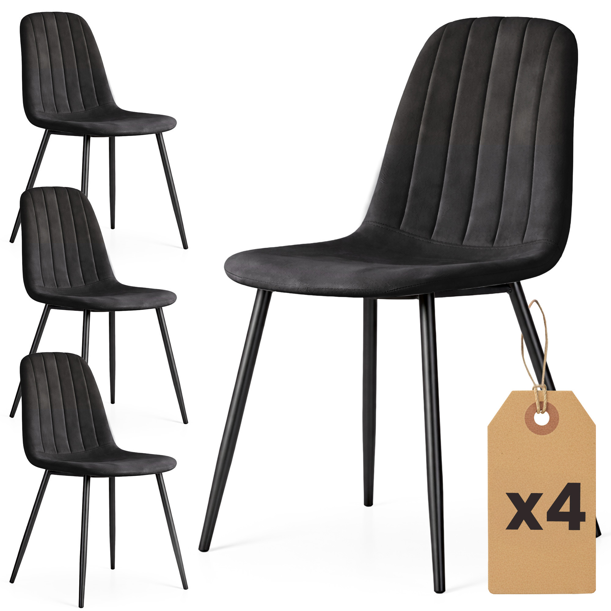 4x Welurowe krzesło tapicerowane pikowane Czarne LUMO Czarne nogi