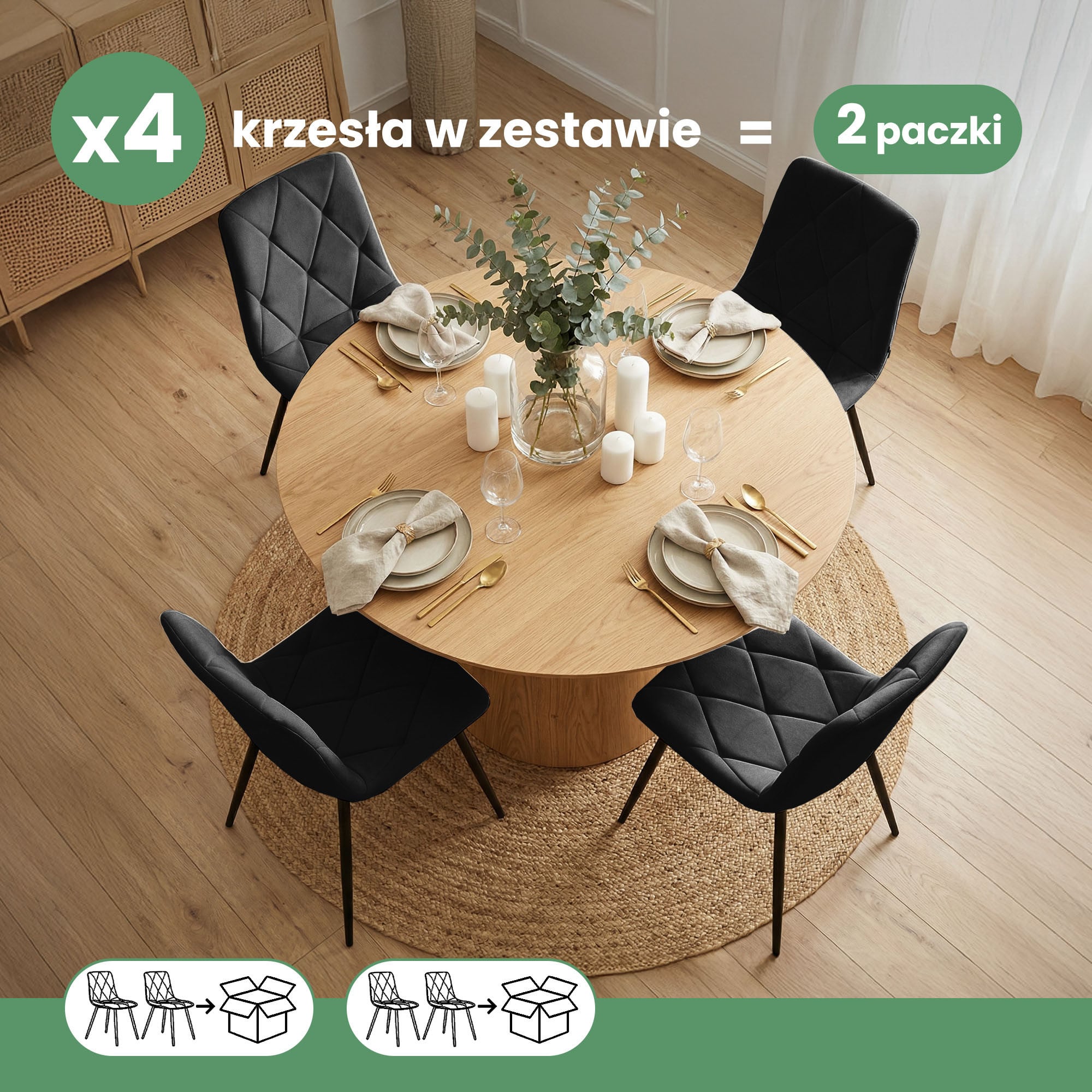 4x Welurowe krzesło tapicerowane pikowane Czarne MILO Czarne nogi
