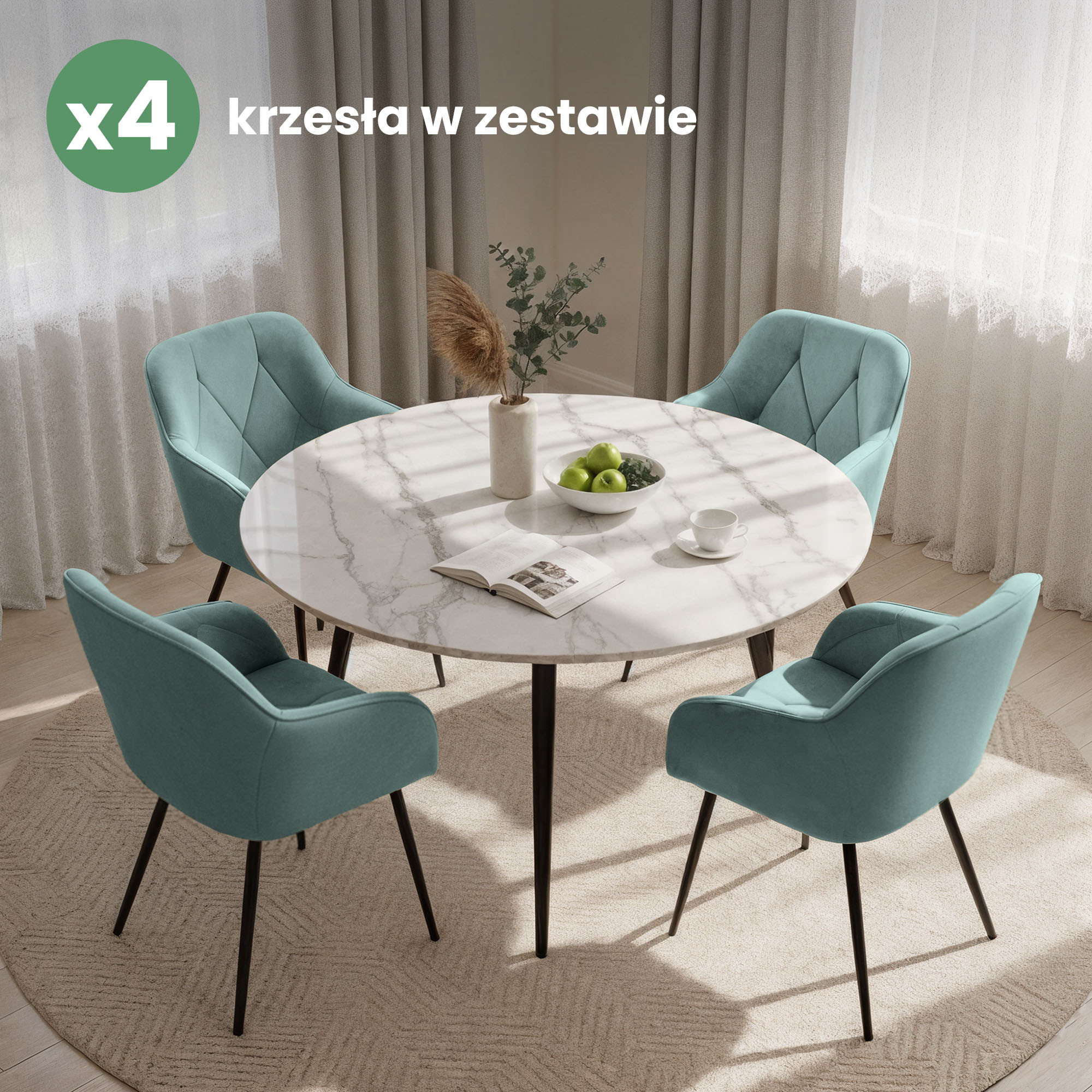 4x Welurowe krzesło tapicerowane pikowane Turkusowe DIAMANTE Czarne nogi