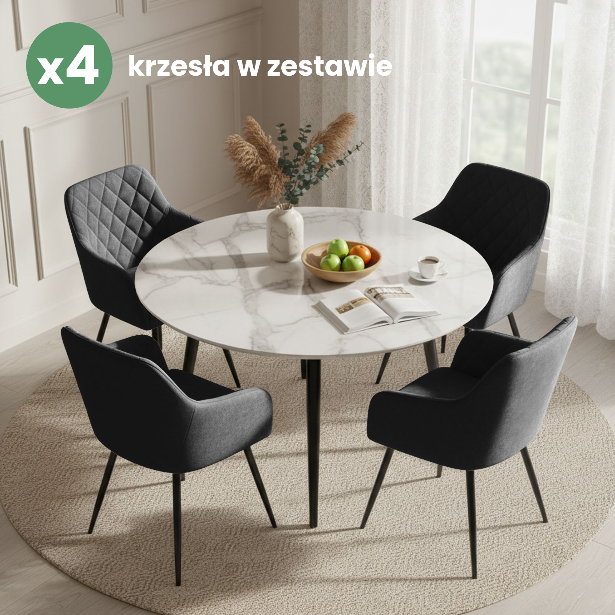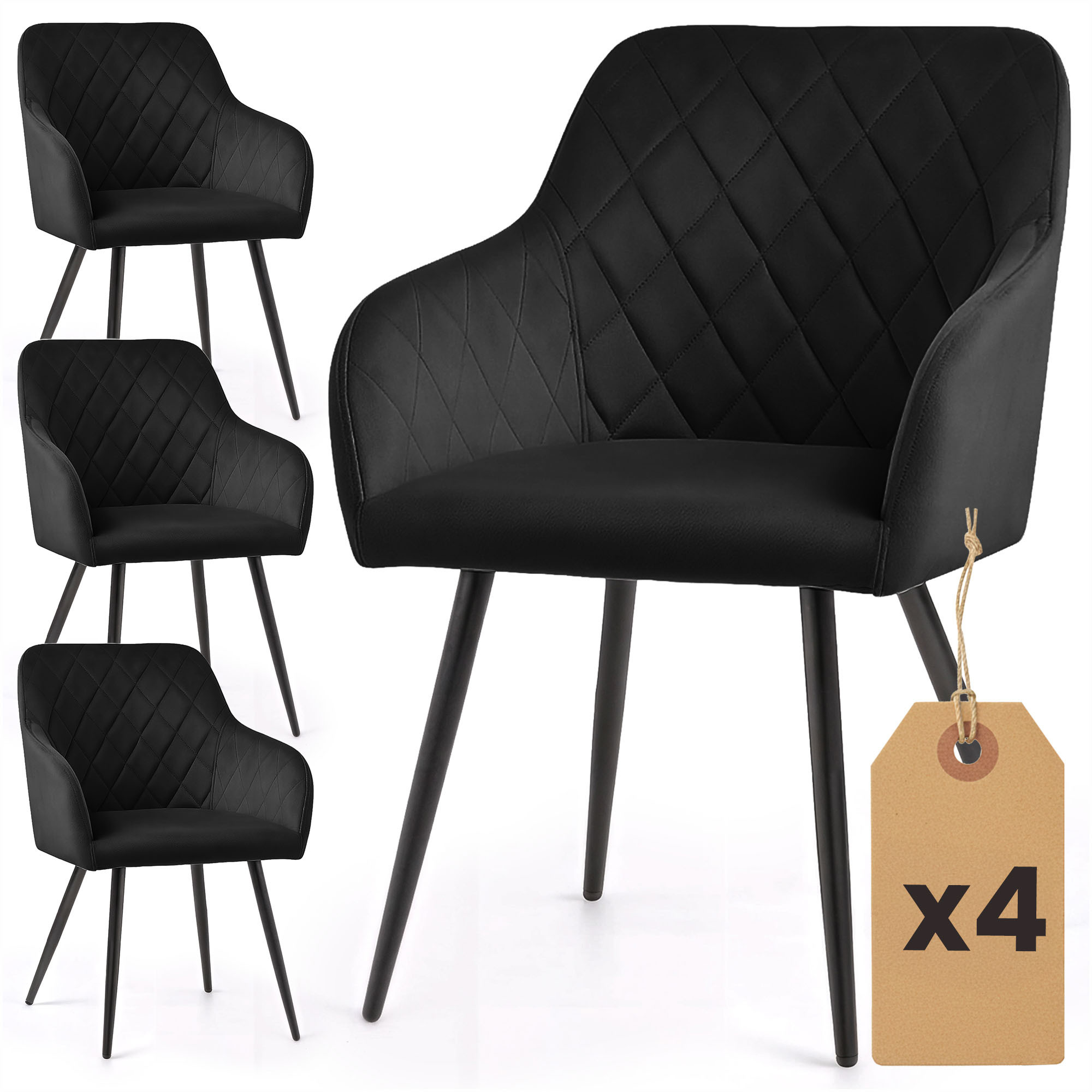 4x Welurowe krzesło tapicerowane pikowane w romby Czarne VELTO Czarne nogi