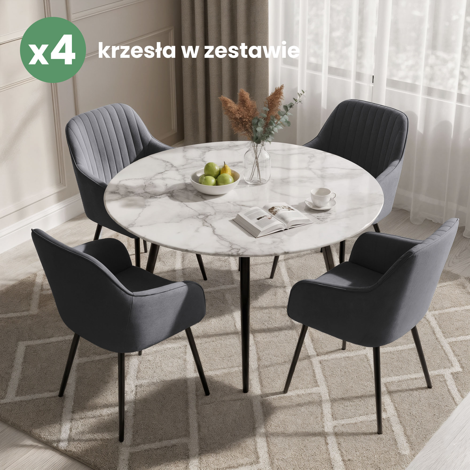4x Welurowe krzesło tapicerowane z przeszyciami Ciemny Grafit FLORENCE Czarne nogi