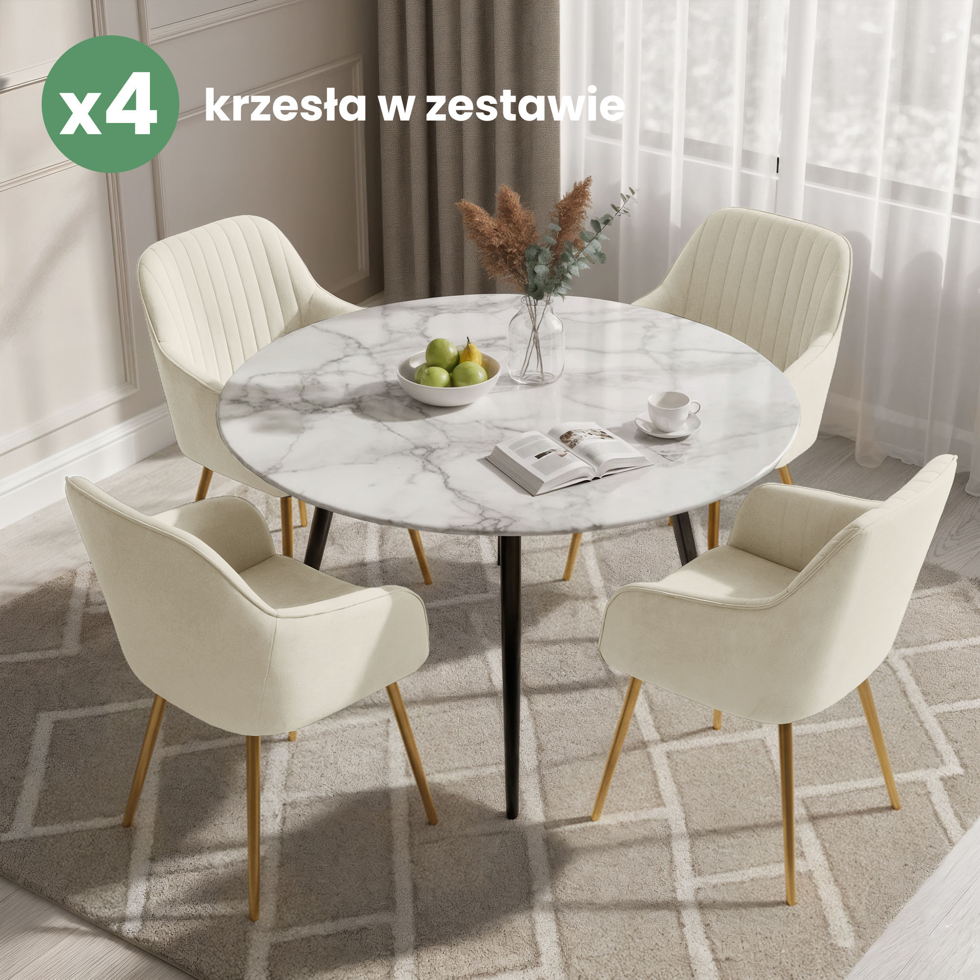 4x Welurowe krzesło tapicerowane z przeszyciami Kremowe FLORENCE Złote nogi