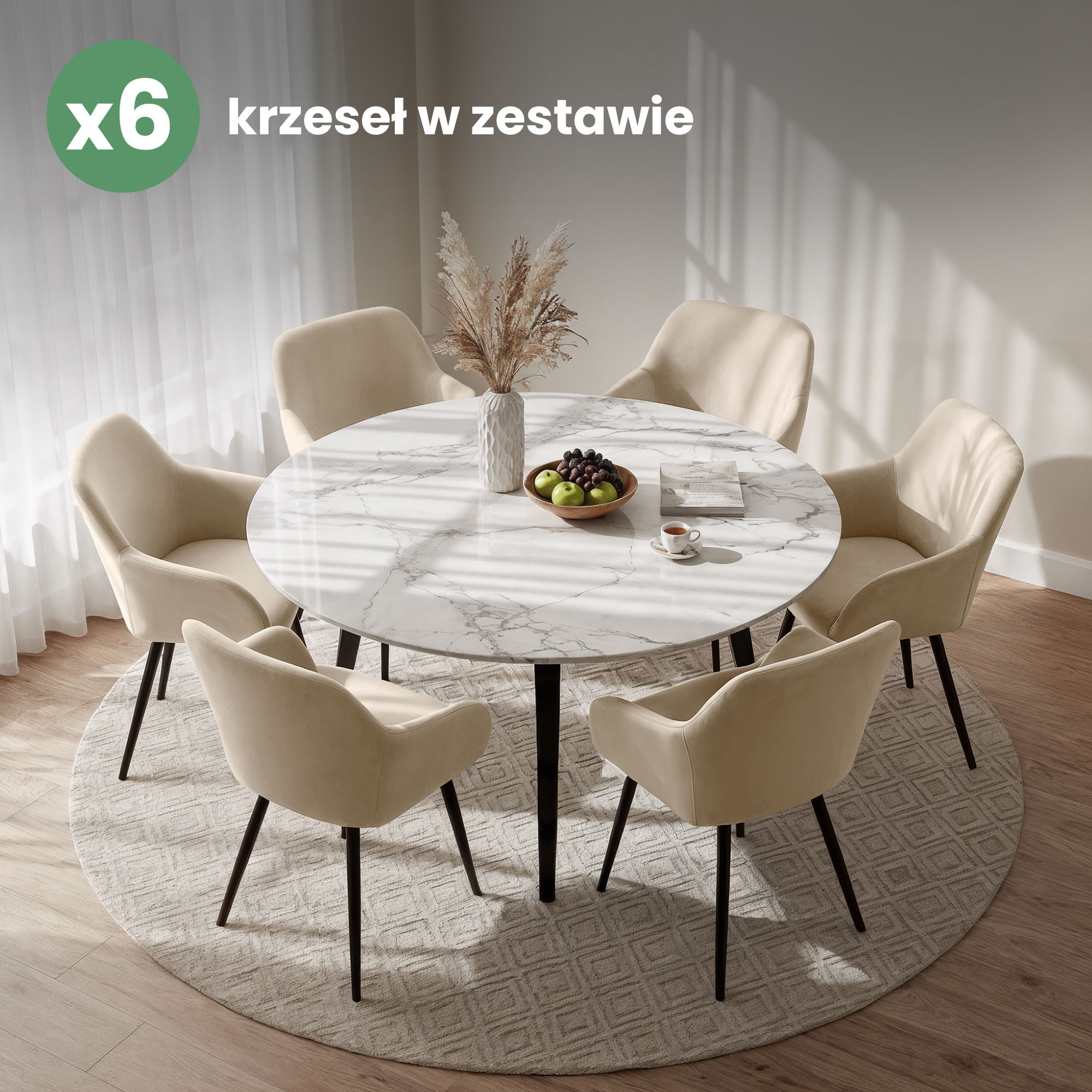 6x Welurowe krzesło tapicerowane gładkie Beżowe ESTELLE Czarne nogi