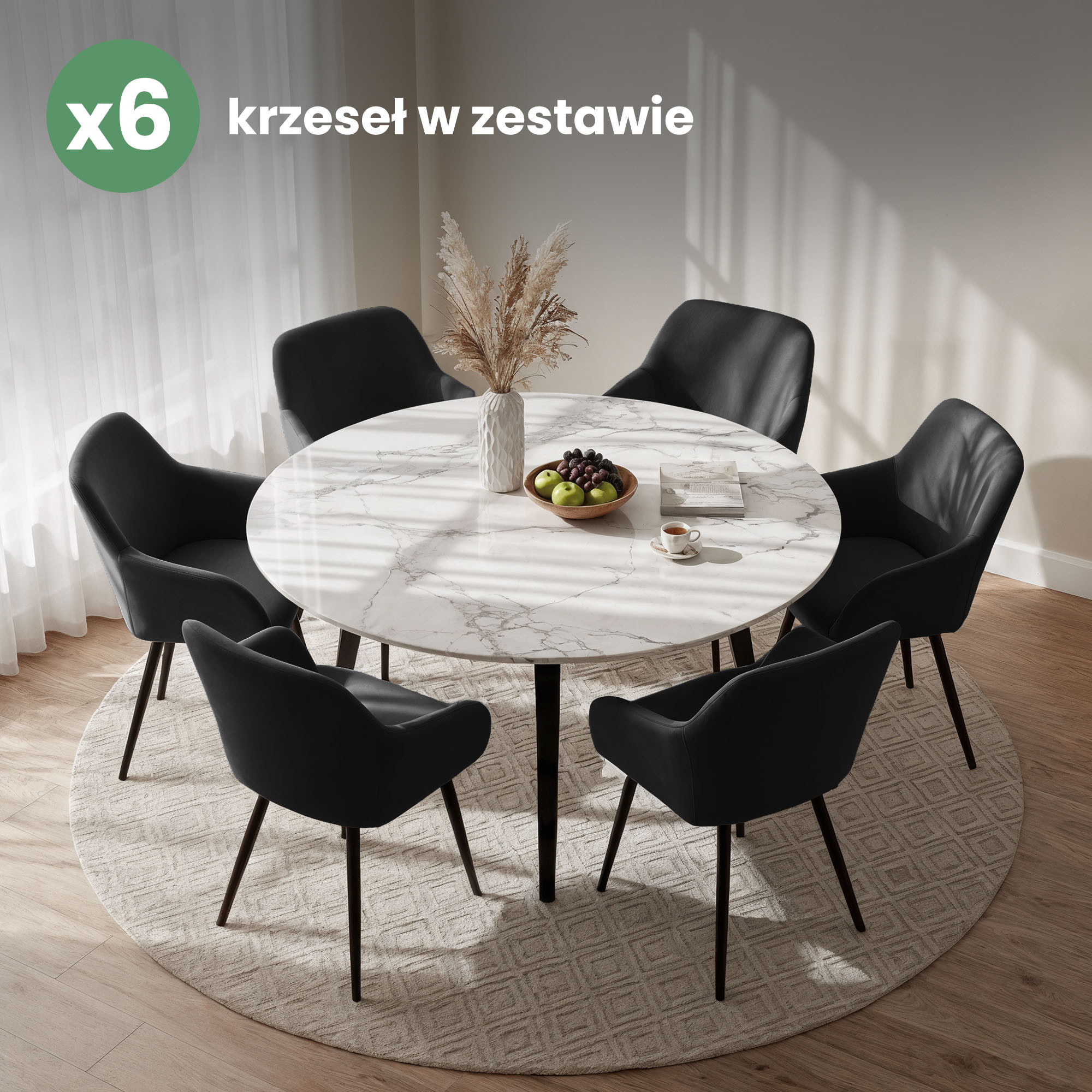 6x Welurowe krzesło tapicerowane gładkie Czarne ESTELLE Czarne nogi