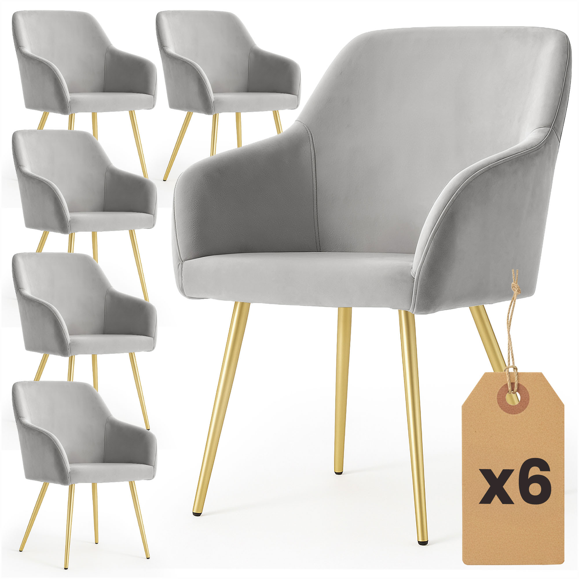 6x Welurowe krzesło tapicerowane gładkie Szare ESTELLE Złote nogi