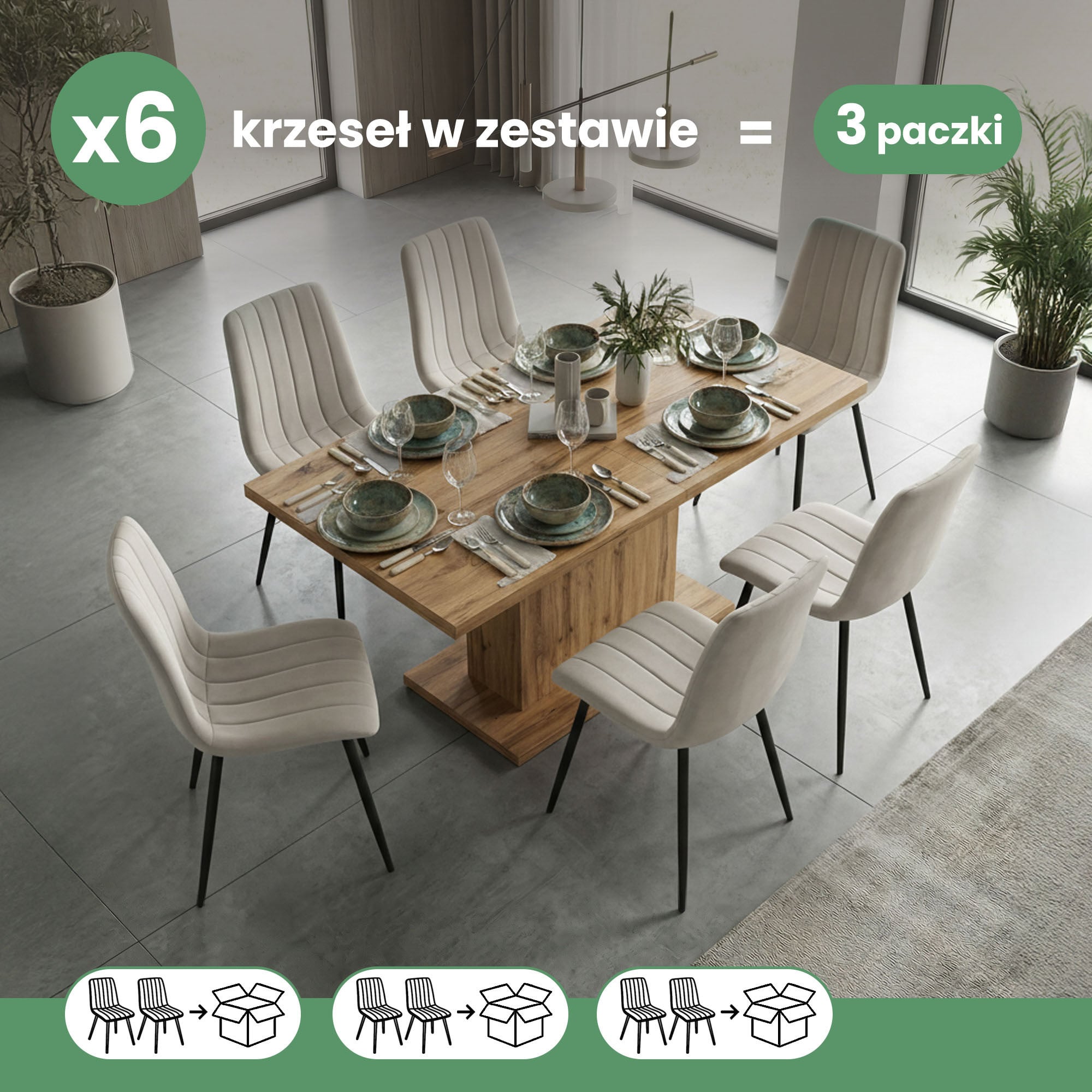 6x Welurowe krzesło tapicerowane pikowane Beżowe LIVO Czarne nogi