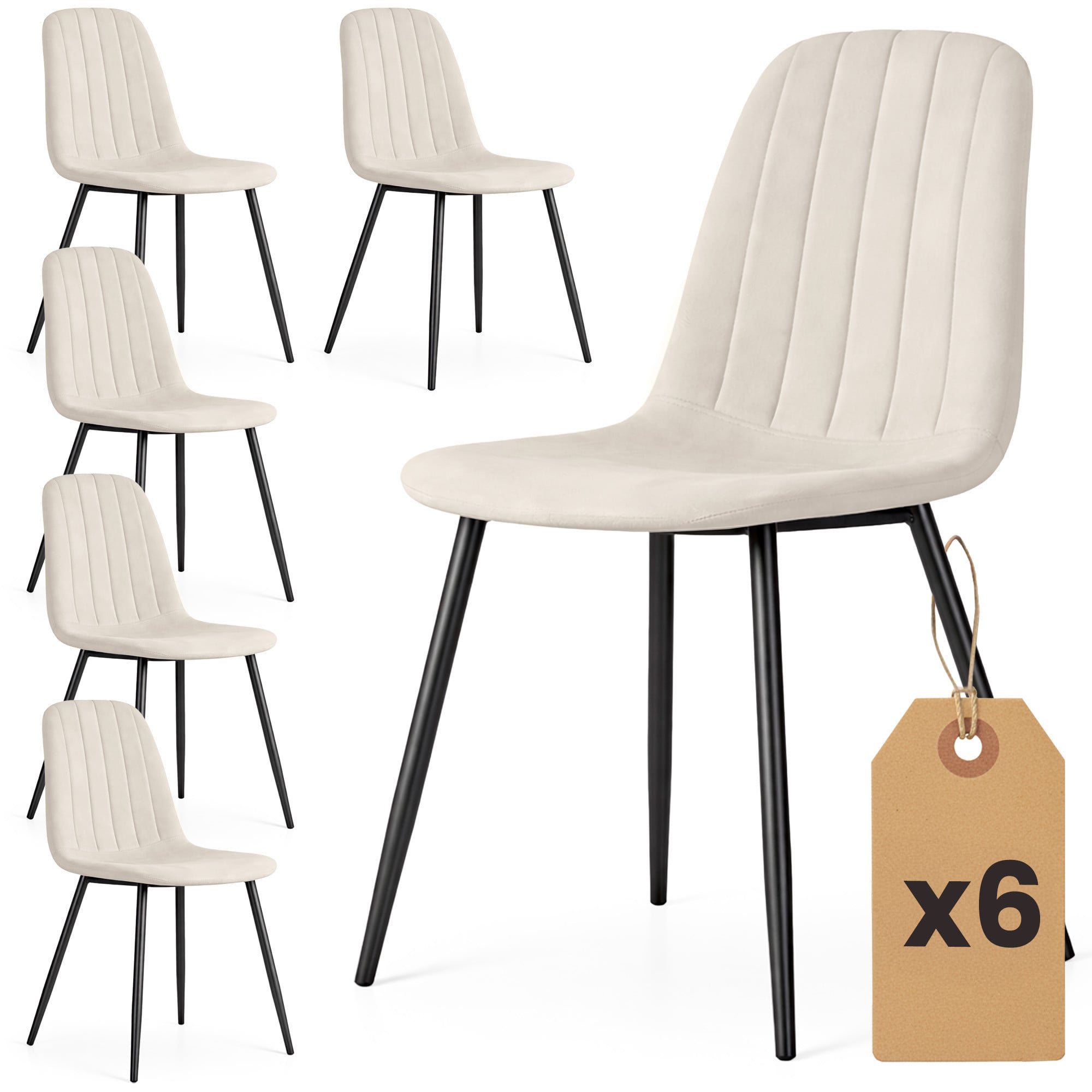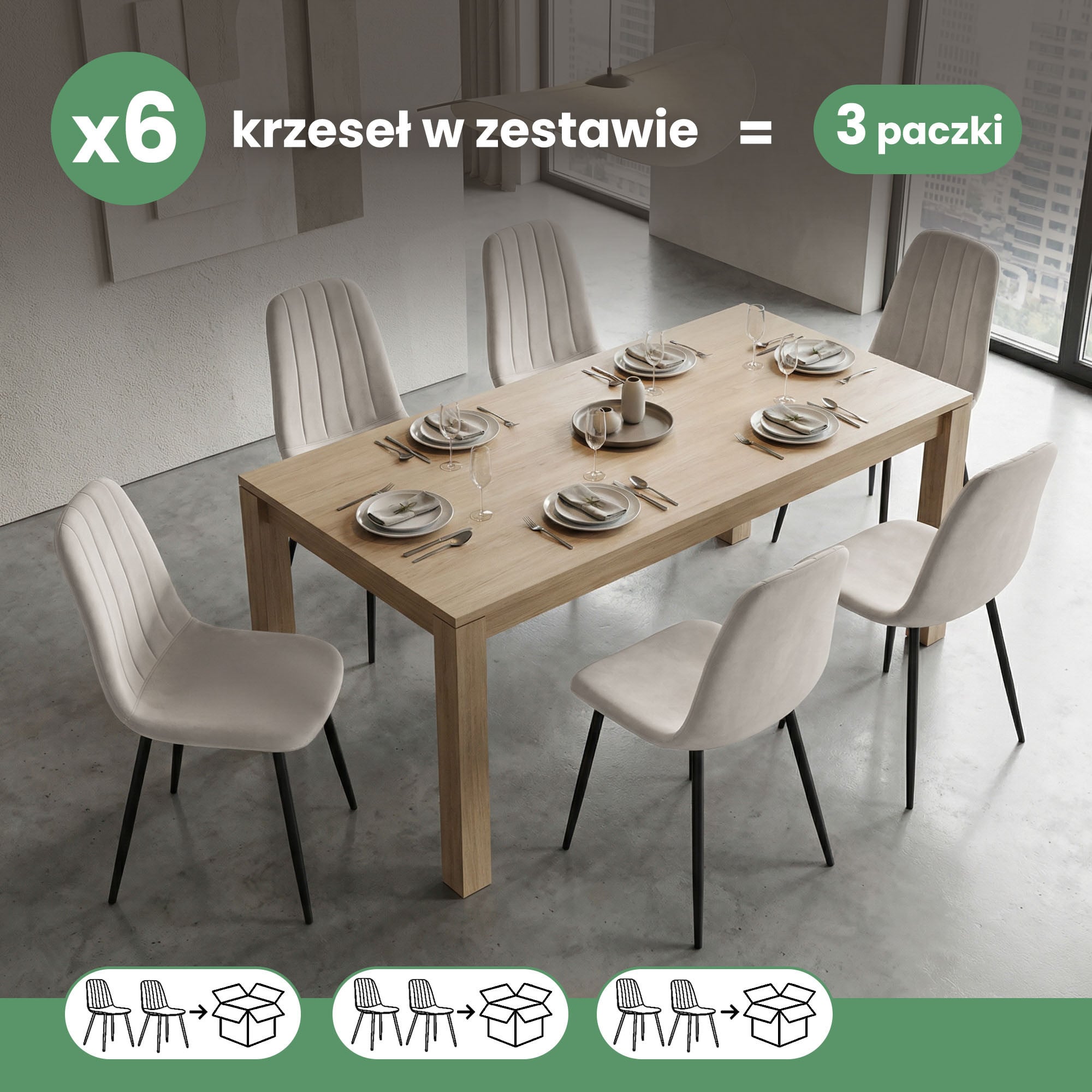 6x Welurowe krzesło tapicerowane pikowane Beżowe LUMO Czarne nogi