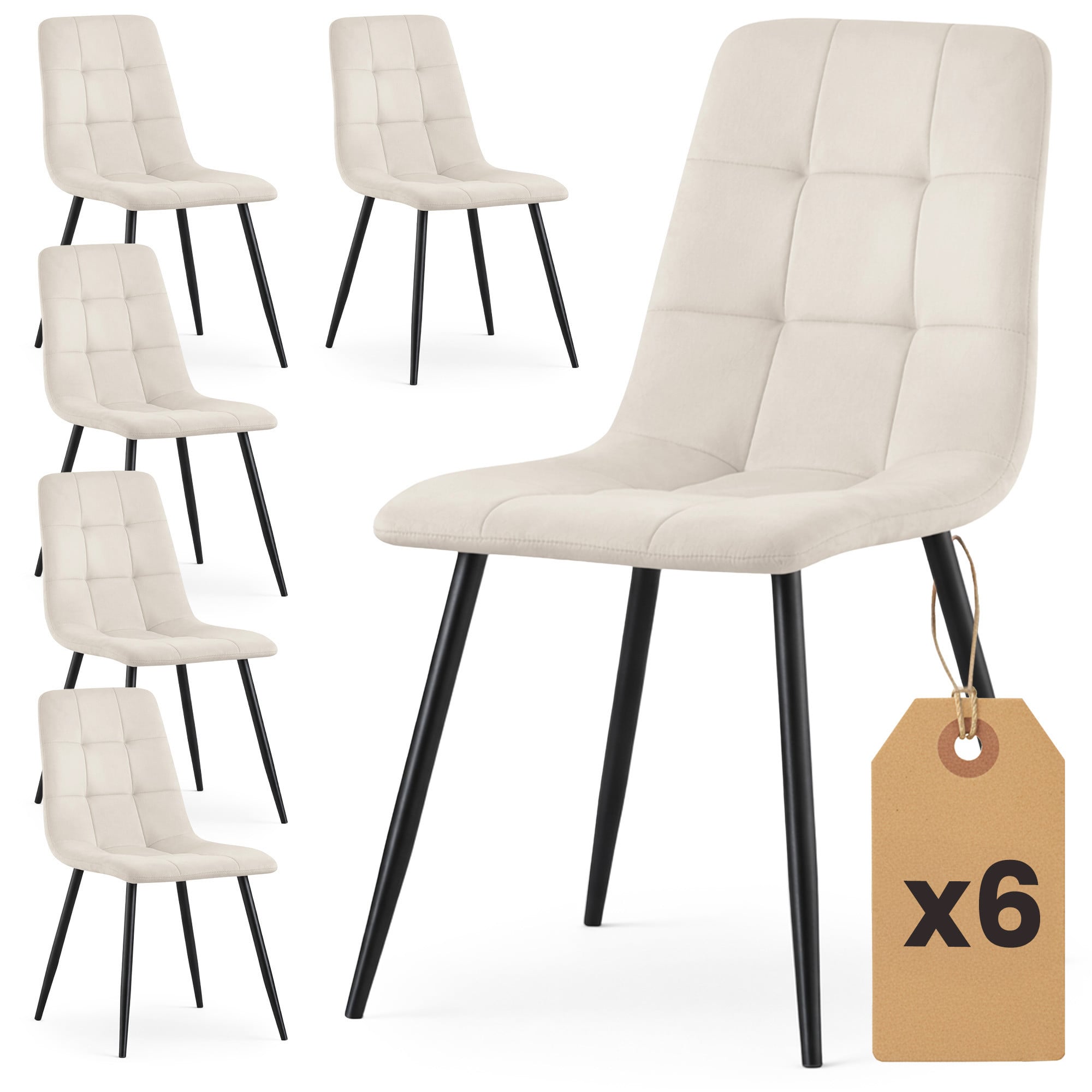 6x Welurowe krzesło tapicerowane pikowane Beżowe NERO Czarne nogi