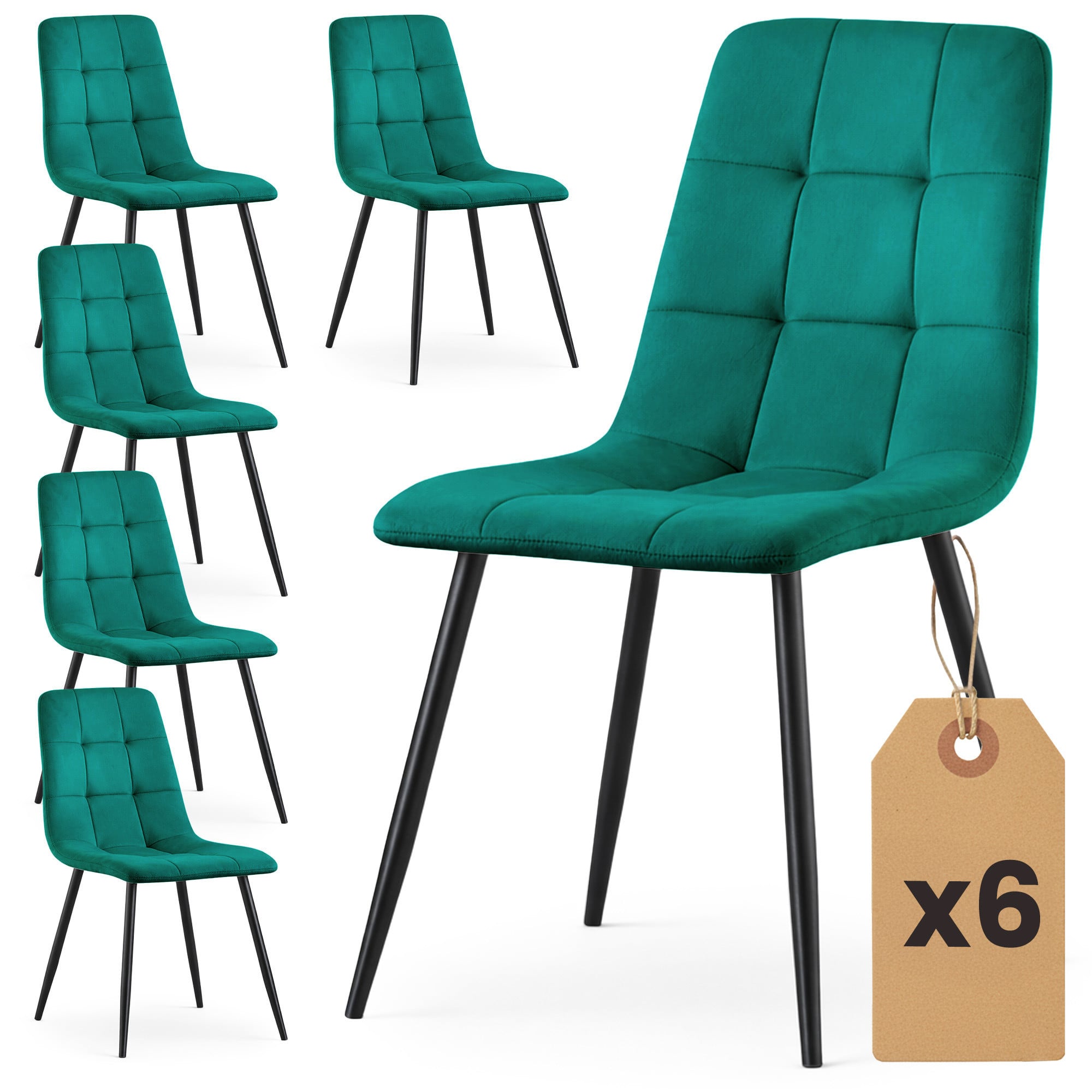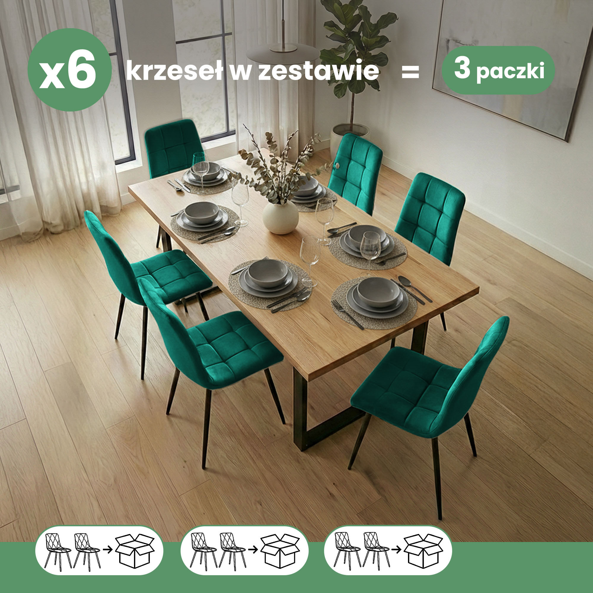 6x Welurowe krzesło tapicerowane pikowane Butelkowa Zieleń NERO Czarne nogi