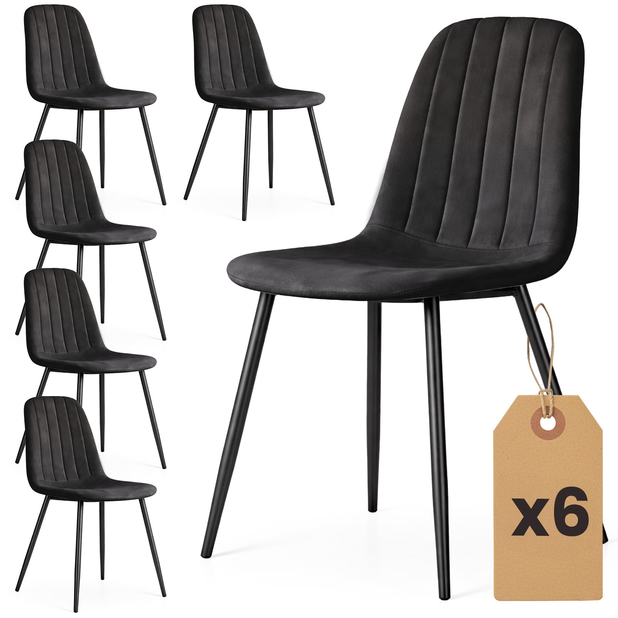 6x Welurowe krzesło tapicerowane pikowane Czarne LUMO Czarne nogi
