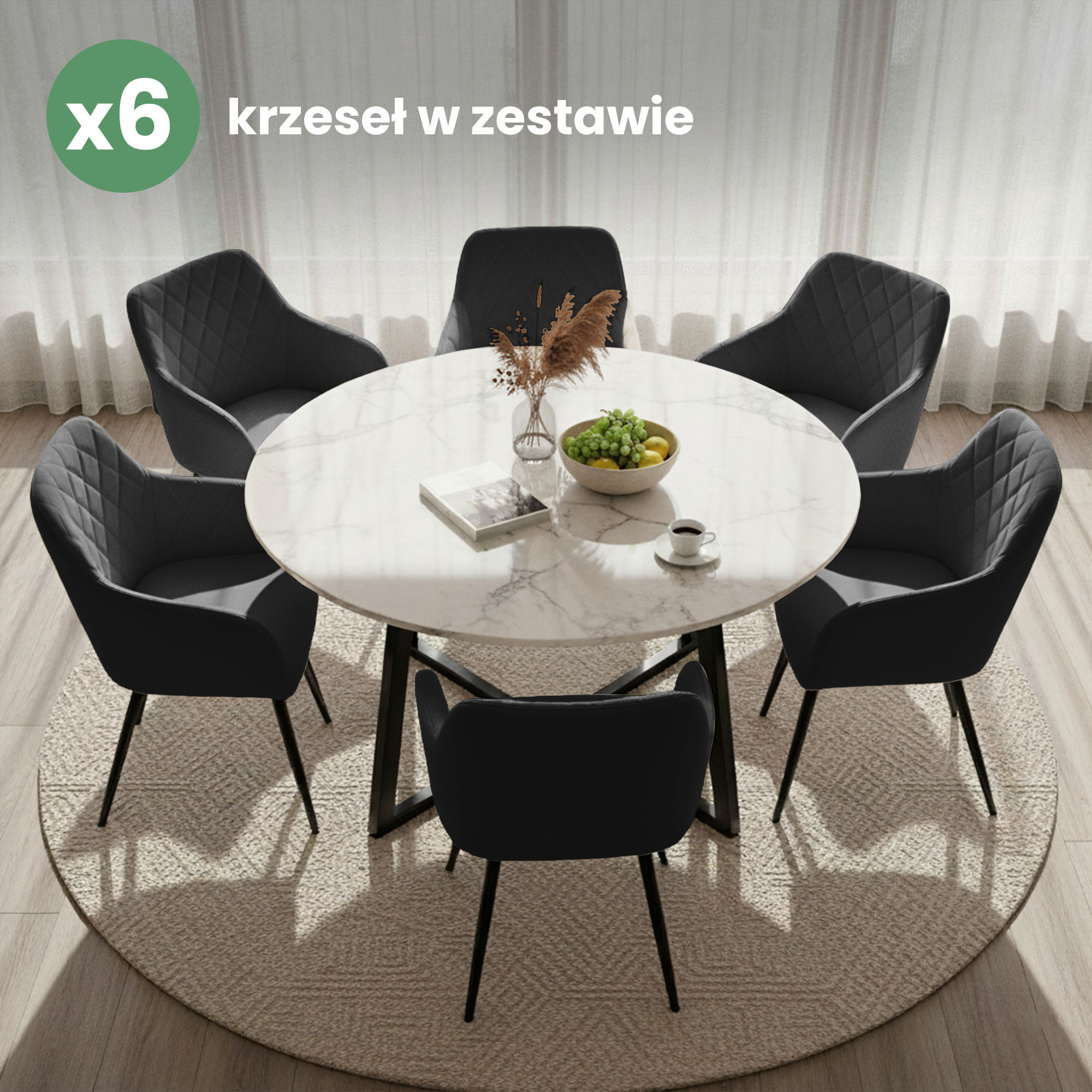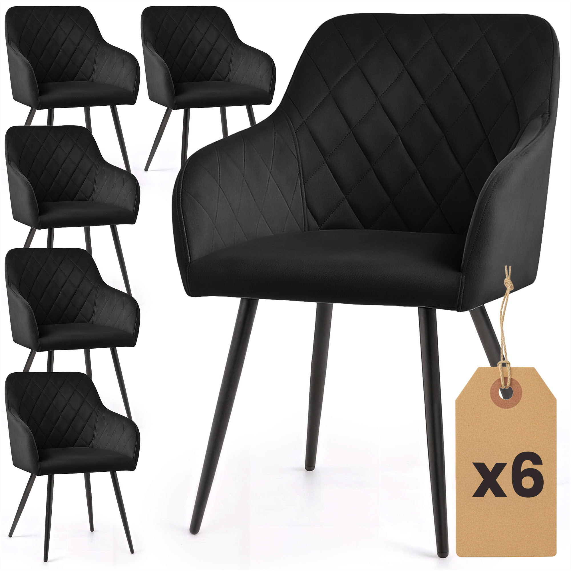 6x Welurowe krzesło tapicerowane pikowane w romby Czarne VELTO Czarne nogi
