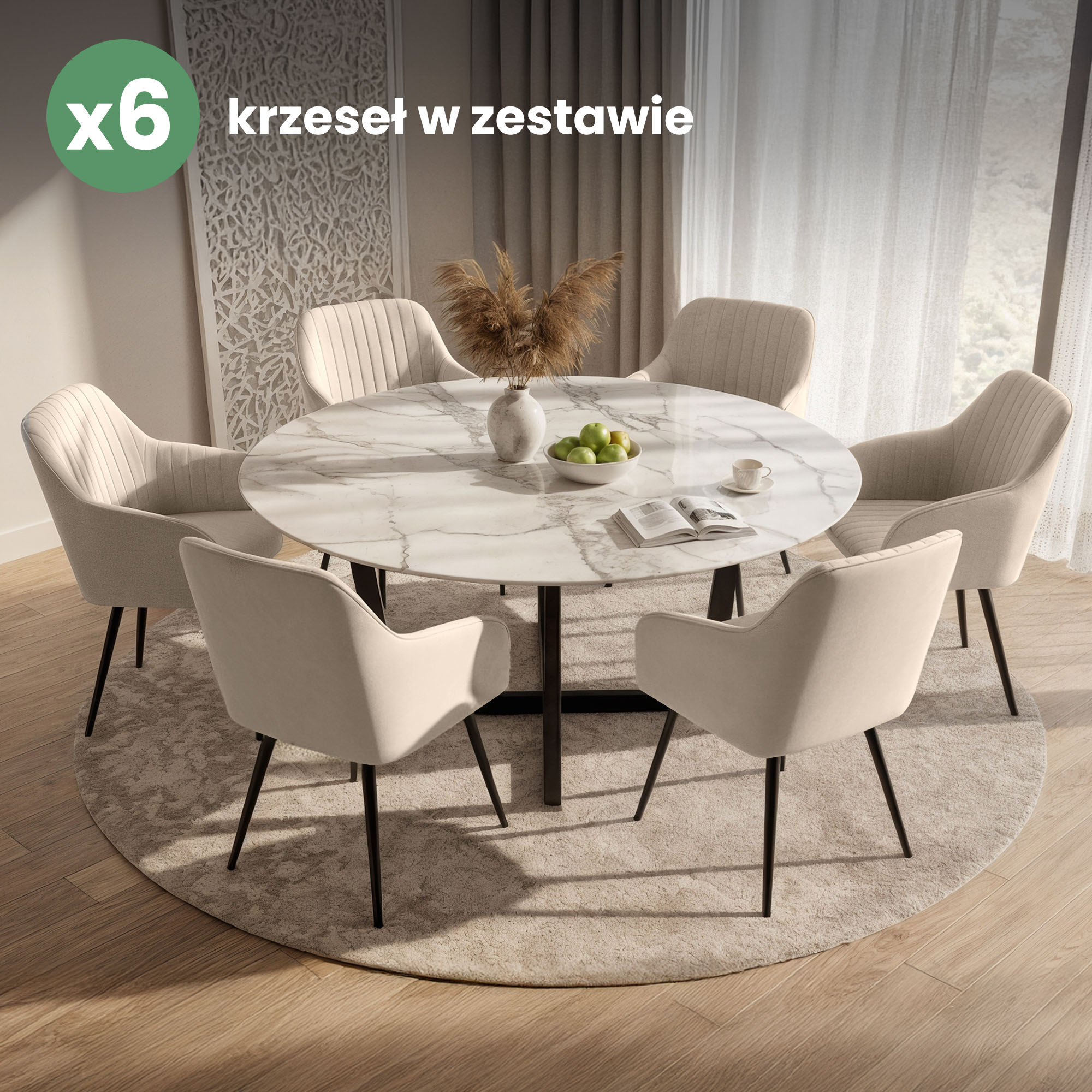 6x Welurowe krzesło tapicerowane z przeszyciami Beżowe FLORENCE Czarne nogi