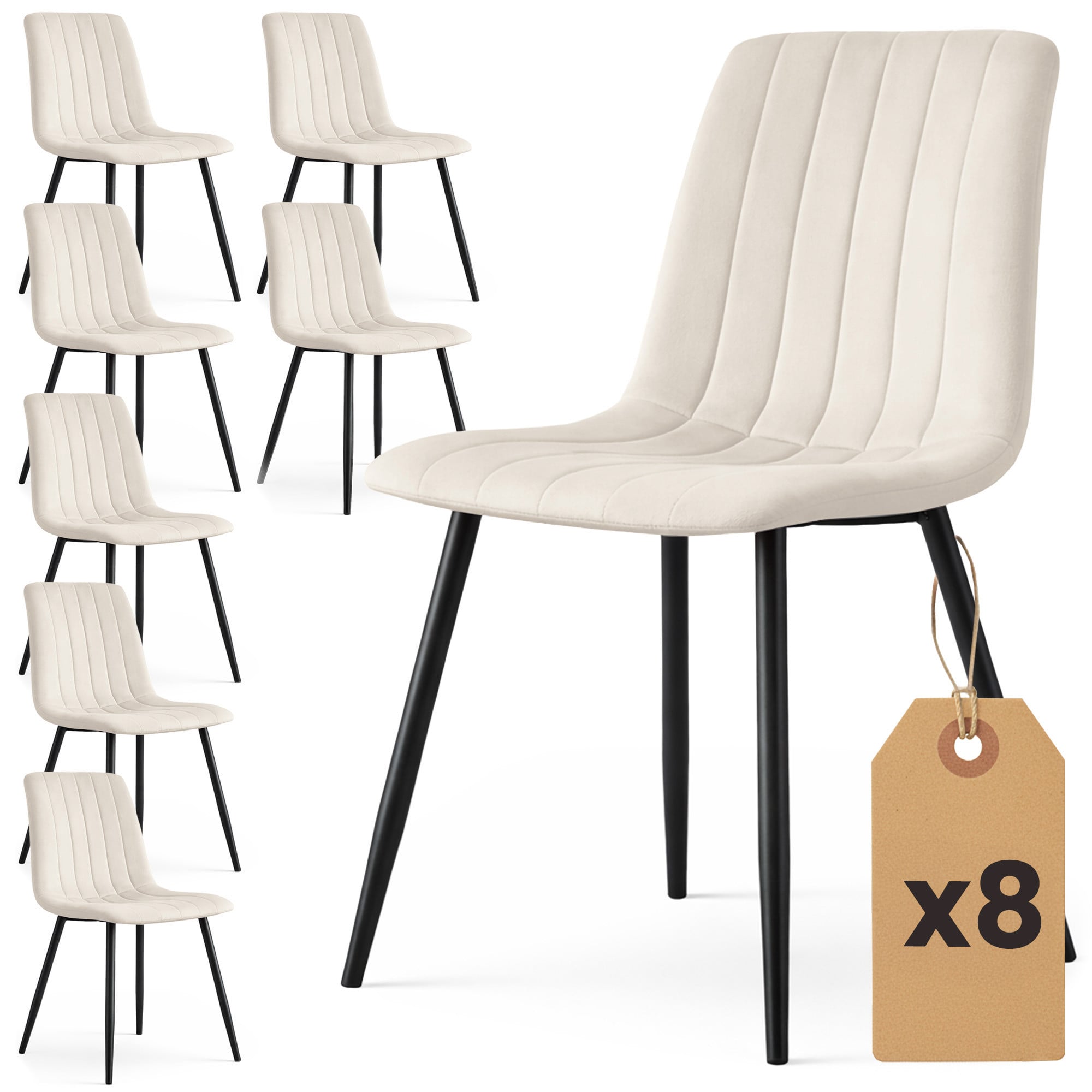 8x Welurowe krzesło tapicerowane pikowane Beżowe LIVO Czarne nogi