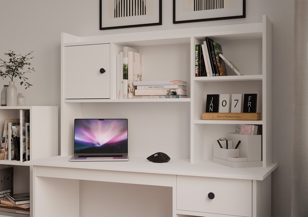 - Nadstawka z półkami – wszystko pod ręką: książki, segregatory, dekoracje
