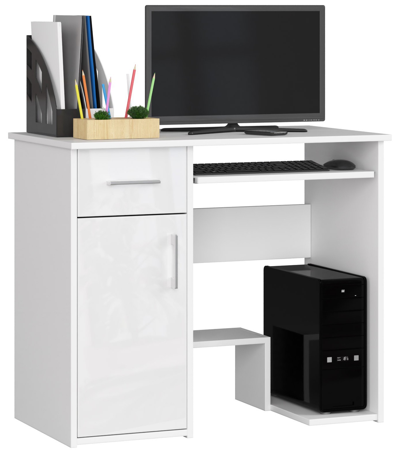 Białe biurko na komputer zostało stworzone z myślą o osobach, które potrzebują w swoim domu miejsca do pracy przy komputerze, jednak do wykorzystania mają niewielką przestrzeń. Te niewielkie pod względem gabarytów biurko jest w stanie pomieścić wszystkie niezbędne artykuły biurowe, zapewniając miejsce do pracy, nauki i rozrywki. Mebel może być wykorzystany w pokoju dziecięcym lub młodzieżowym, a także w biurze. Zasługuje na uwagę ze względu na uniwersalny wygląd oraz świetną jakość. Gwarantem jego wytrzymałości i trwałości jest solidne wykonanie z płyty laminowanej o grubości 16 milimetrów. Piękne, starannie wykończone biurko w modnym kolorze białym spotyka się z dużym uznaniem ze strony klientów odwiedzających nasz sklep internetowy. Jeżeli poszukują Państwo mebla gwarantującego komfortową pracę przy komputerze, wykonanego w przemyślany sposób, a dodatkowo atrakcyjnego pod względem ceny, nasza propozycja z pewnością przypadnie Państwu do gustu i pozytywnie zaskoczy połączeniem funkcjonalności oraz wysokiej jakości.