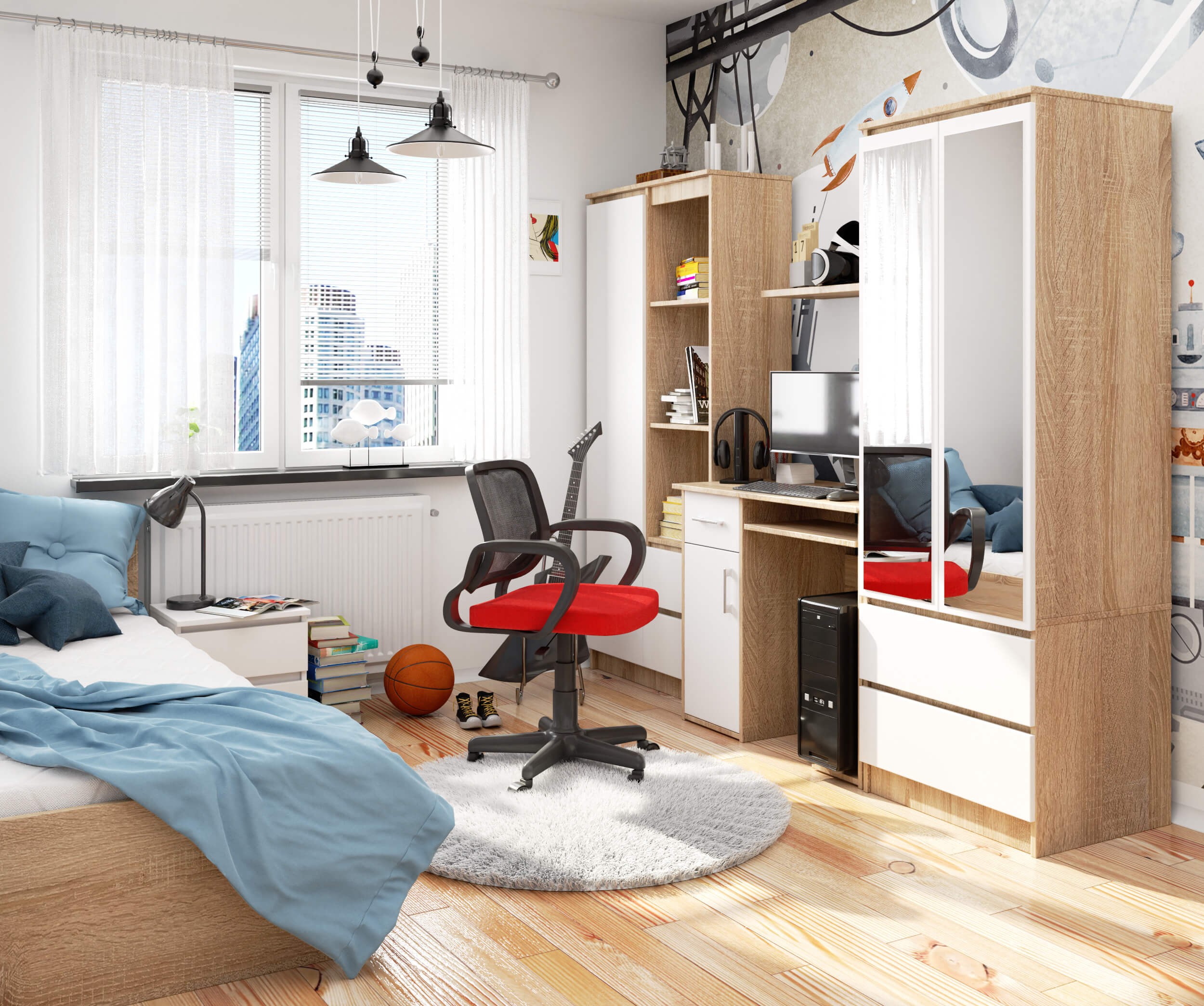 W naszej ofercie znalazło się biurko komputerowe Jay, dla którego charakterystycznym jest spora ilość miejsca do dowolnego zagospodarowania. Użytkownik może oczekiwać trwałej konstrukcji z płyty laminowanej o grubości 16 milimetrów. Znalazło się miejsce na komputer, dużych rozmiarów blat na ekran oraz sprzęt dodatkowy, jak drukarka czy głośniki. Jest także wysuwana półka na metalowych prowadnicach kulkowych, na której można umieścić klawiaturę. Prezentowany egzemplarz ma dodatkowo szufladę oraz szafkę. W szafce za drzwiczkami jest jedna półeczka.