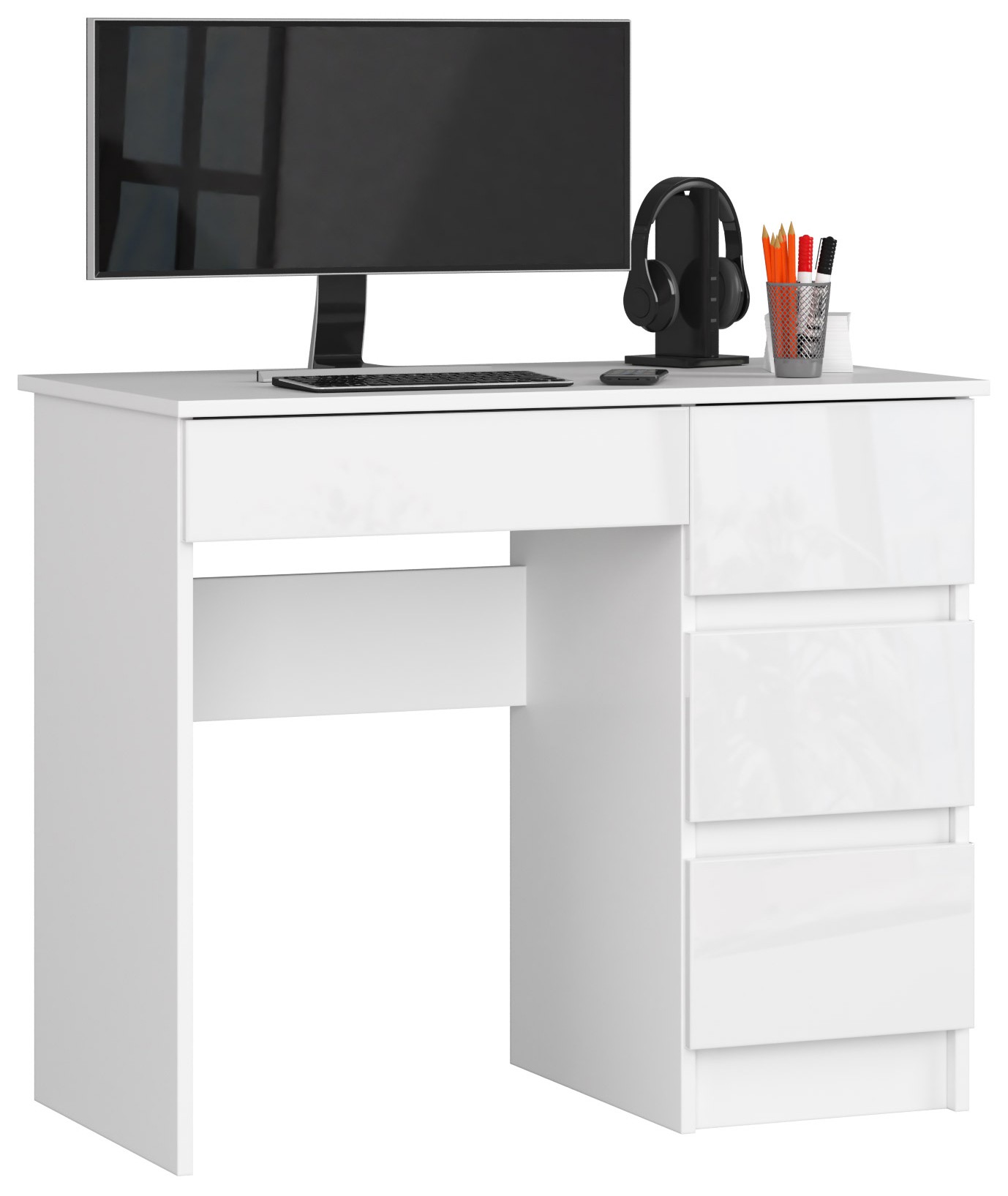 BIURKO KOMPUTEROWE A-7 90 cm PRAWE PK BIAŁE / BIAŁY POŁYSK