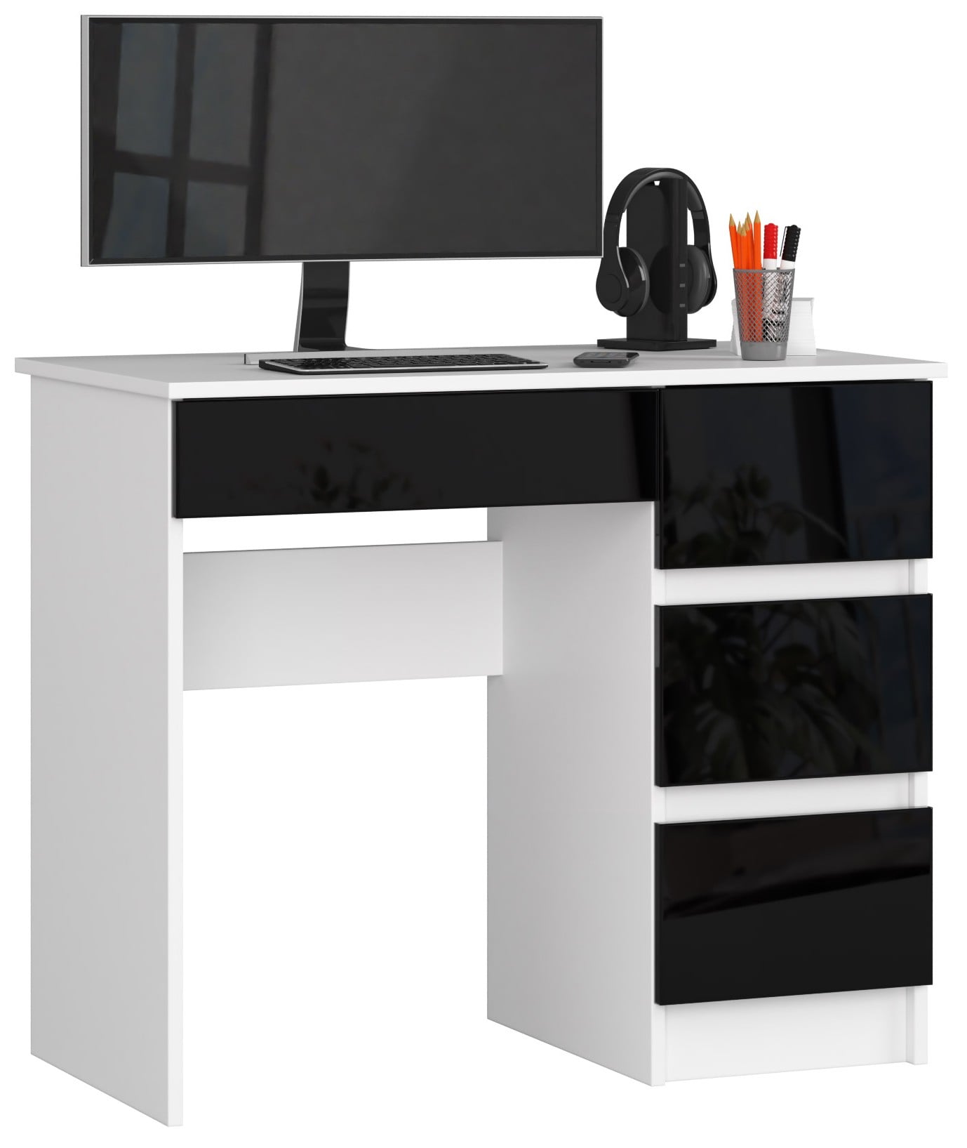 BIURKO KOMPUTEROWE A-7 90 cm PRAWE PK BIAŁE / CZARNY POŁYSK