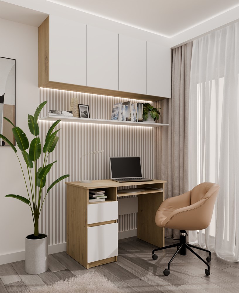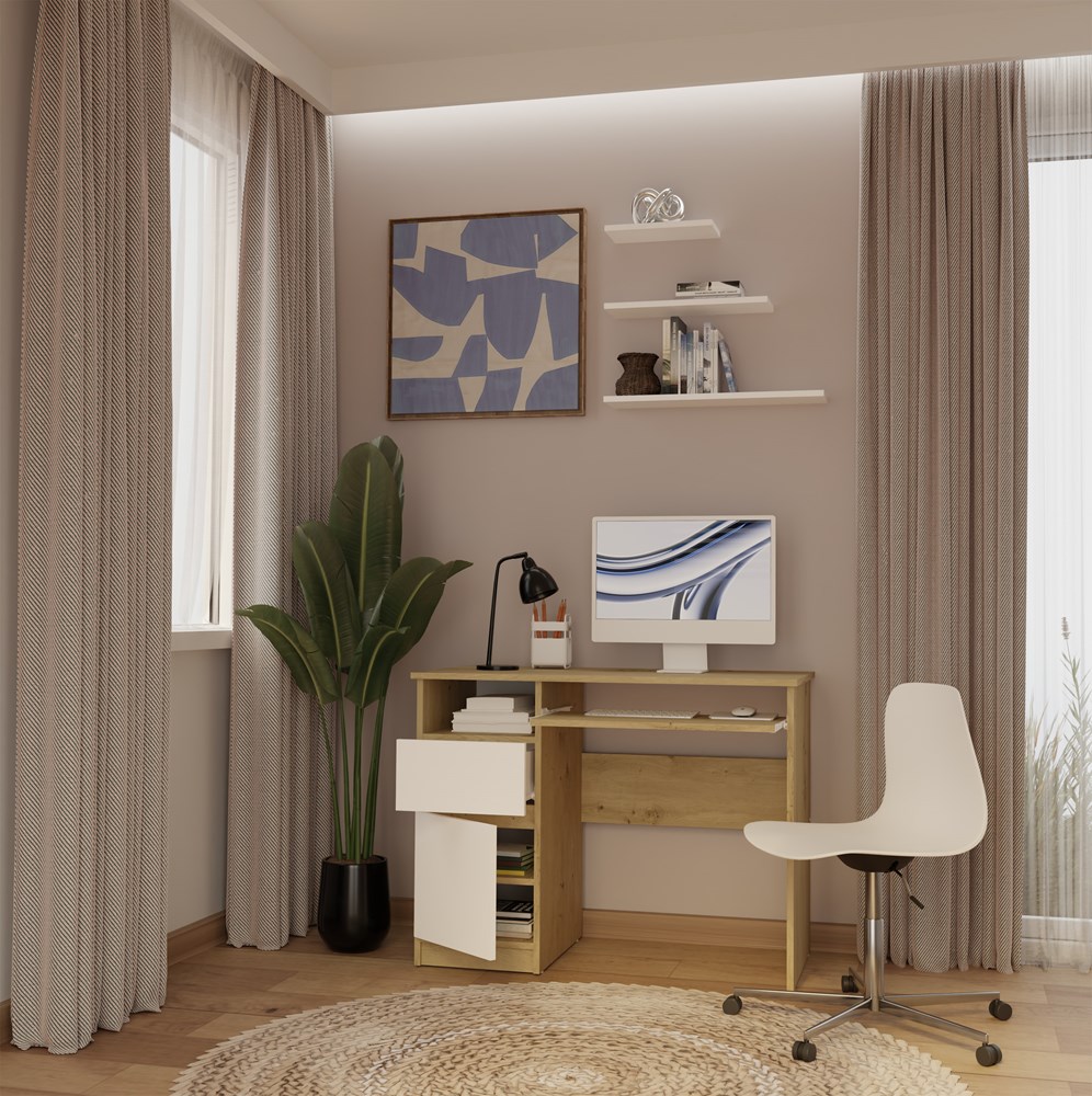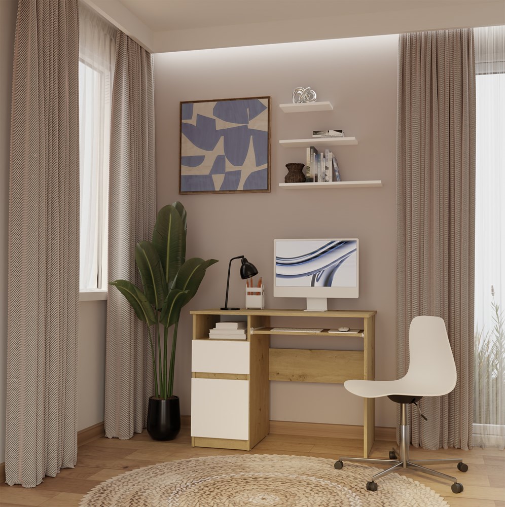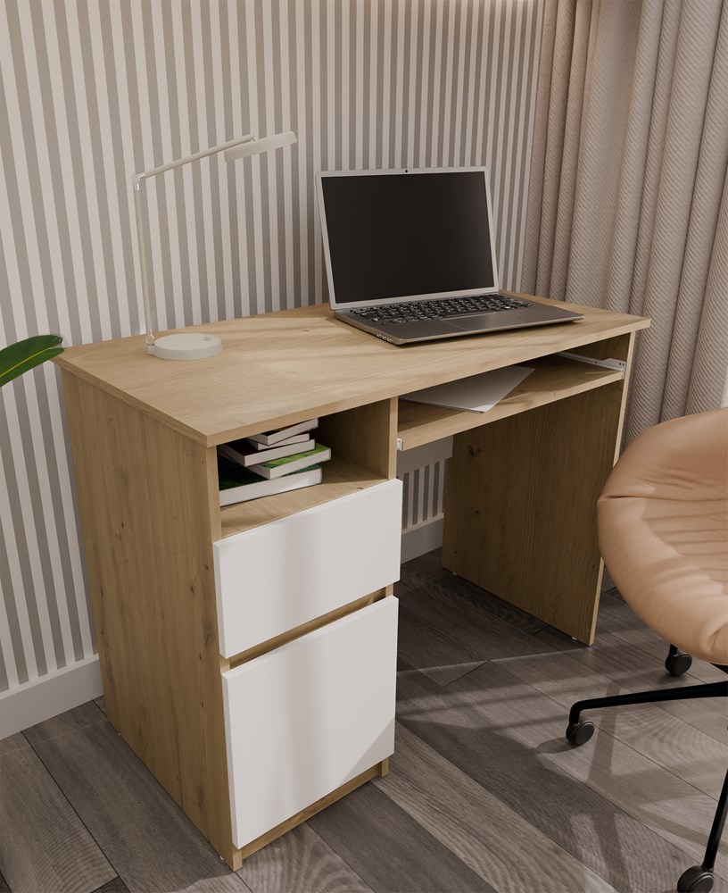 Biurko Komputerowe PORTO LEWE DĄB ARTISAN / BIAŁY Z Szufladą 98,5x75x51 Cm