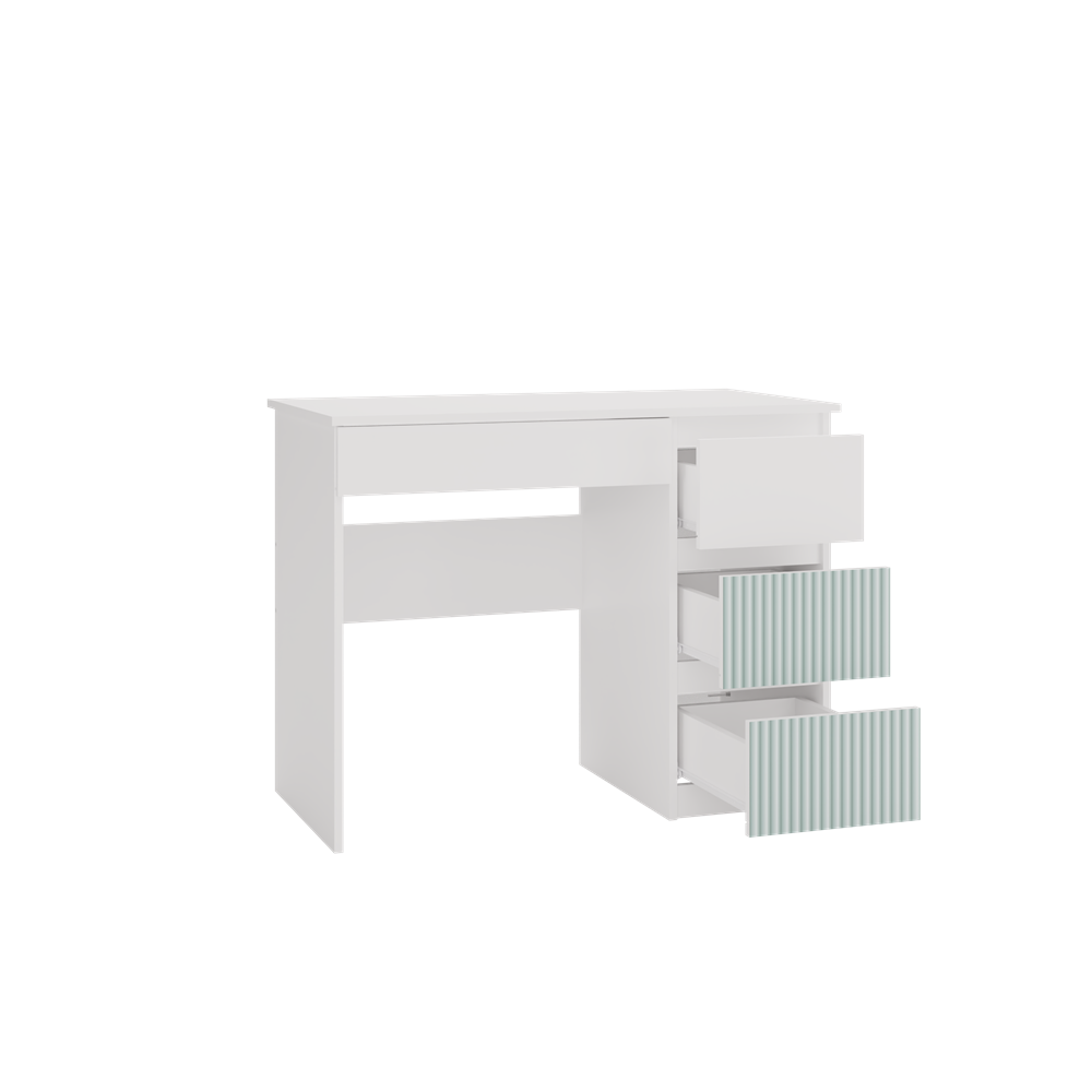 - 3 pojemne wysokie szuflady z prawej strony (w tym 2 szuflady z miętowymi wzorami) i 1 niska z lewej strony pod blatem