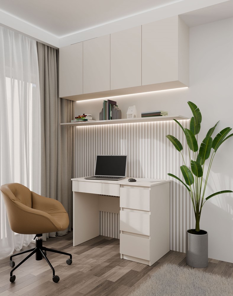 Biurko Mijas Prawe z 4 szufladami świetnie sprawdzi się w domowych pokojach jak i w biurze.