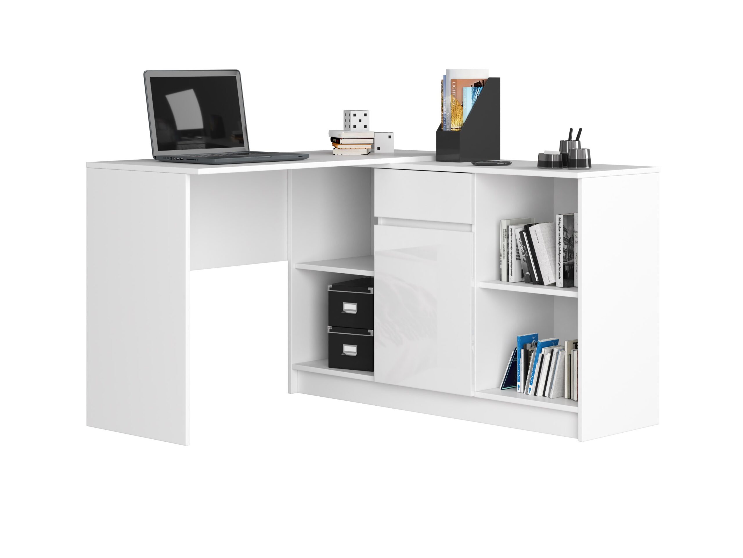 BIURKO NAROŻNE – ZESTAW B-17 KOMODA I BIURKO PK BIAŁY POŁYSK