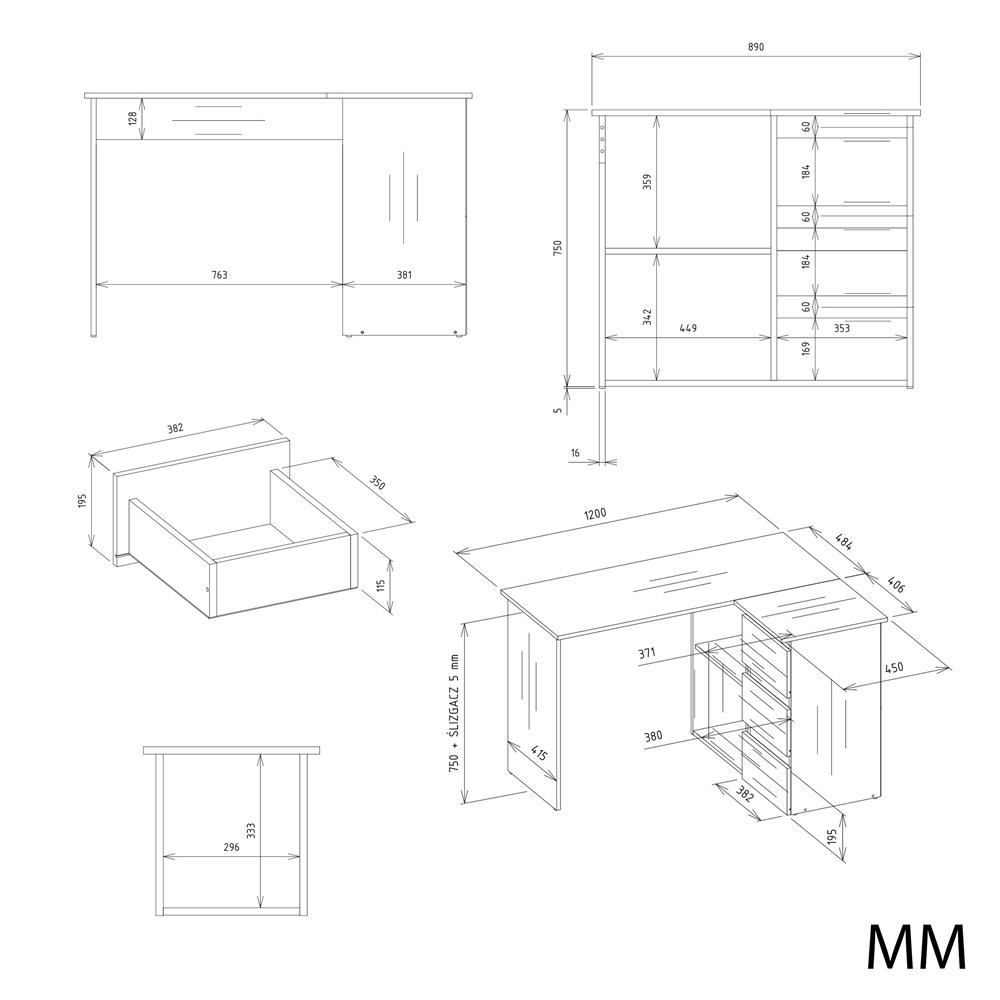 Prezentowany model posiada konkretny układ – wariant z odwróconą stroną biurka znajdziesz w naszej drugiej ofercie.